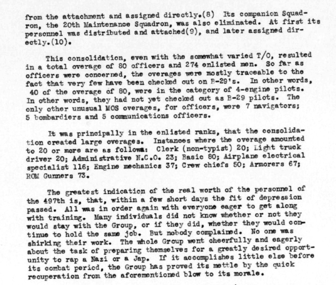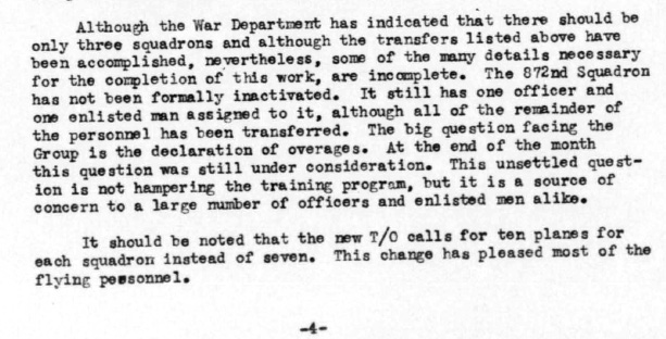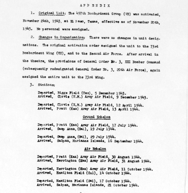 All four squadrons of the 497th Bomb Group were constituted on 19 Nov 43 and activated on 20 Nov 43. The 869th, 870th, and 871st were inactivated during March 1946. The 872nd was inactivated on 10 May 44 and went on to become a part of the 382nd Bomb Group in Septemeber 1944.