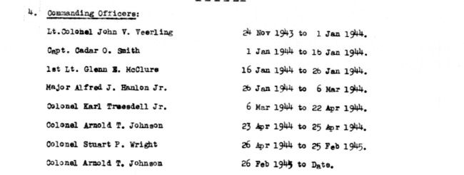 November 1943 Commanding Officers Monthly Strength