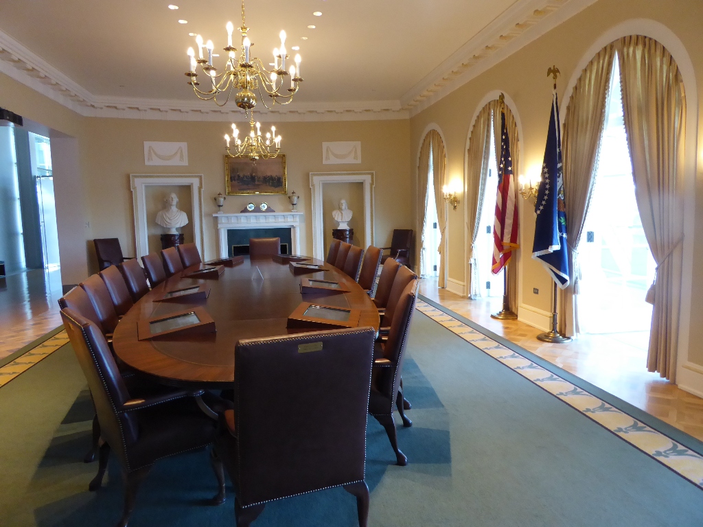 On the 2nd floor are the Cabinet Room, State Dining table, and the Oval Office.