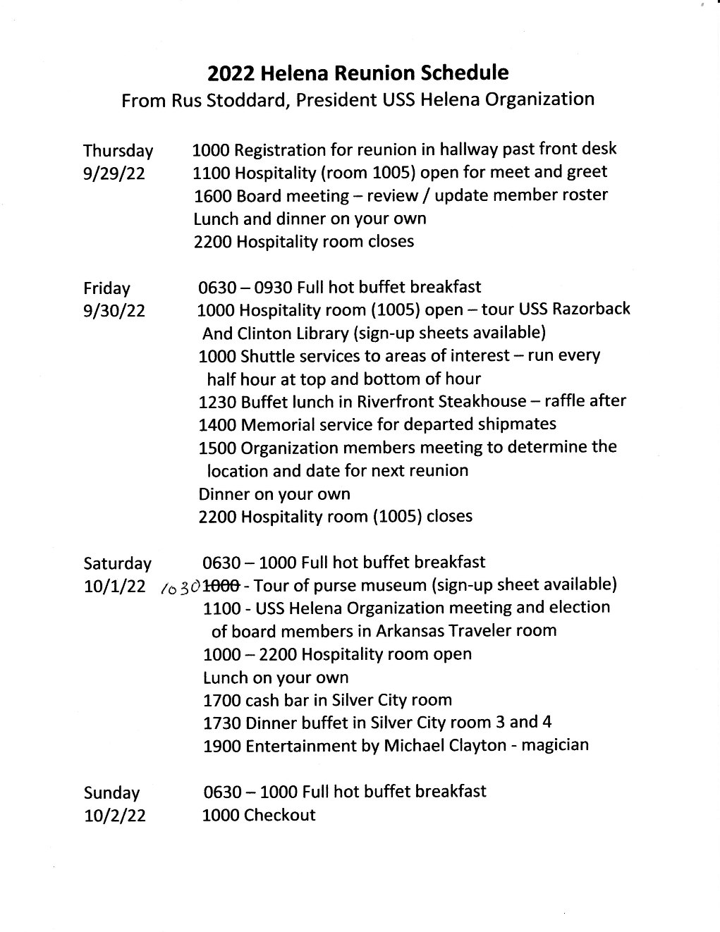 Reunion schedule is at bottom of page