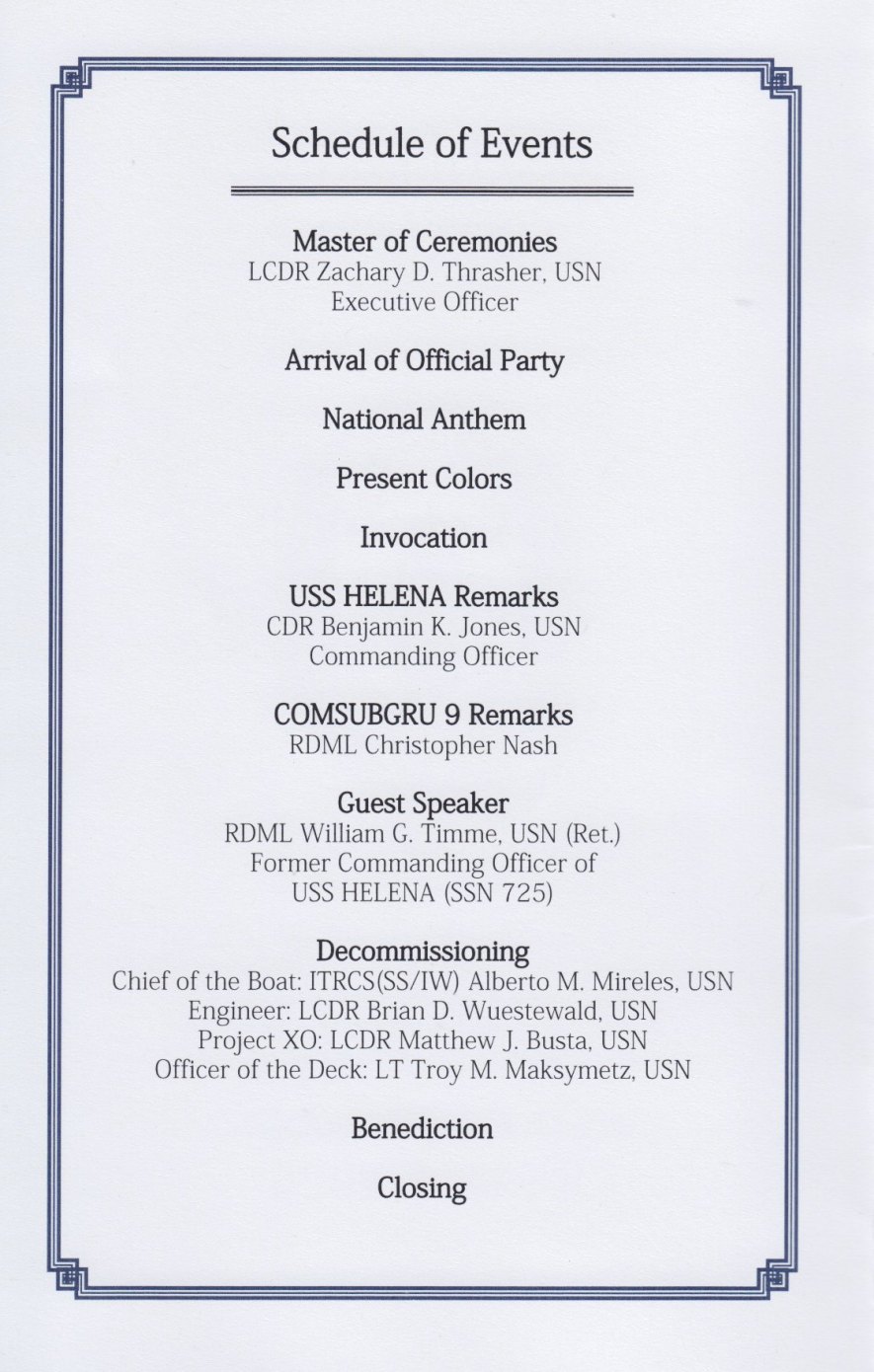 2025 USS HELENA ( SSN 725 ) Decommissioning Bremerton, Washington Decommissioning Ceremony Page 1