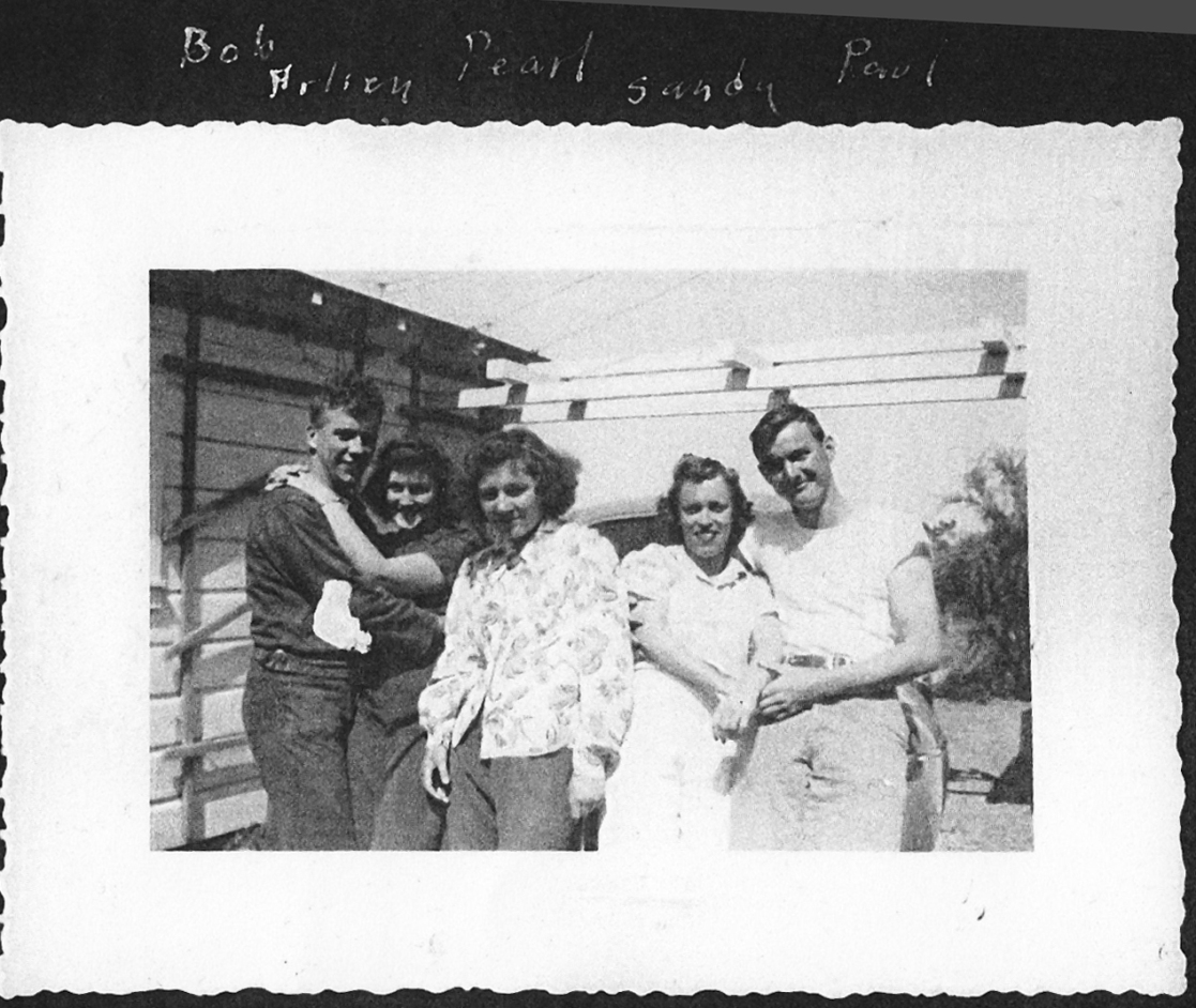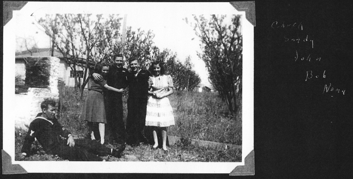 CHUCK ( kneeling at left) SANDY JOHN NONA BOB AL AND ARLIEN