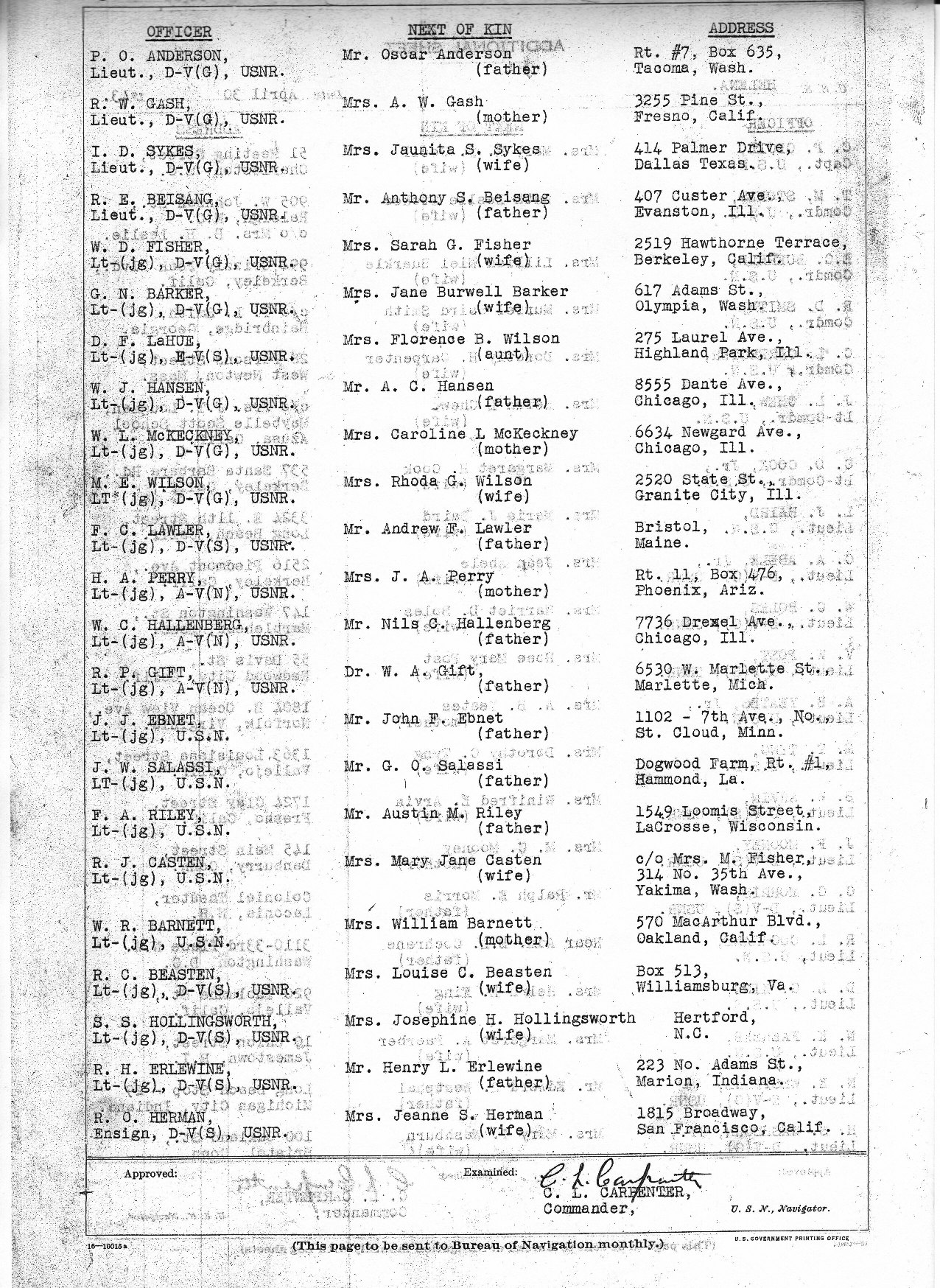 USS HELENA CL-50 DECK LOG APRIL 1943 ROSTER OF OFFICERS PAGE 2