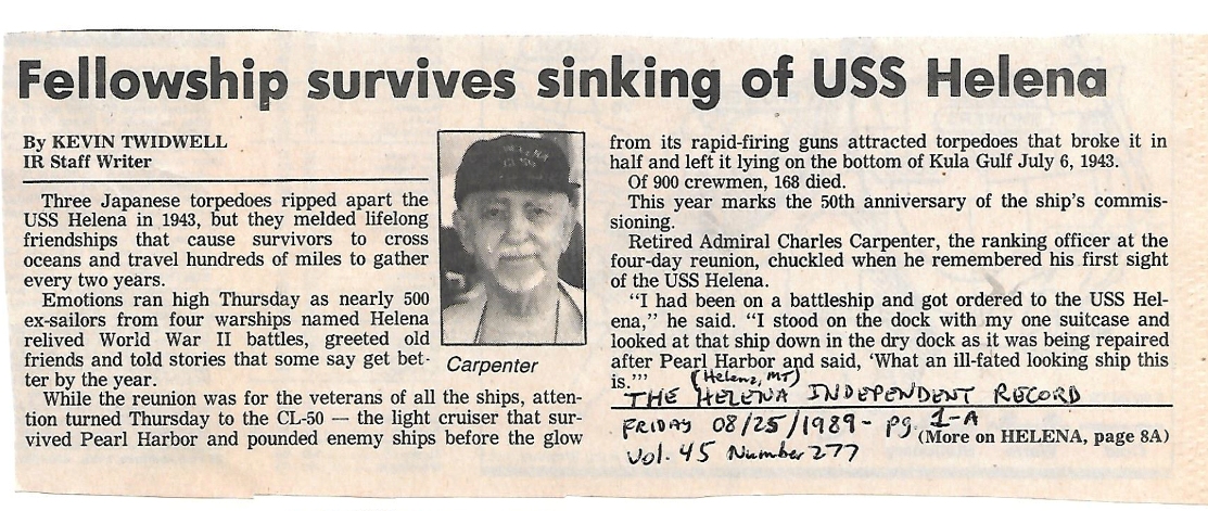 April 1943 USS Helena CL-50 Deck Log in which