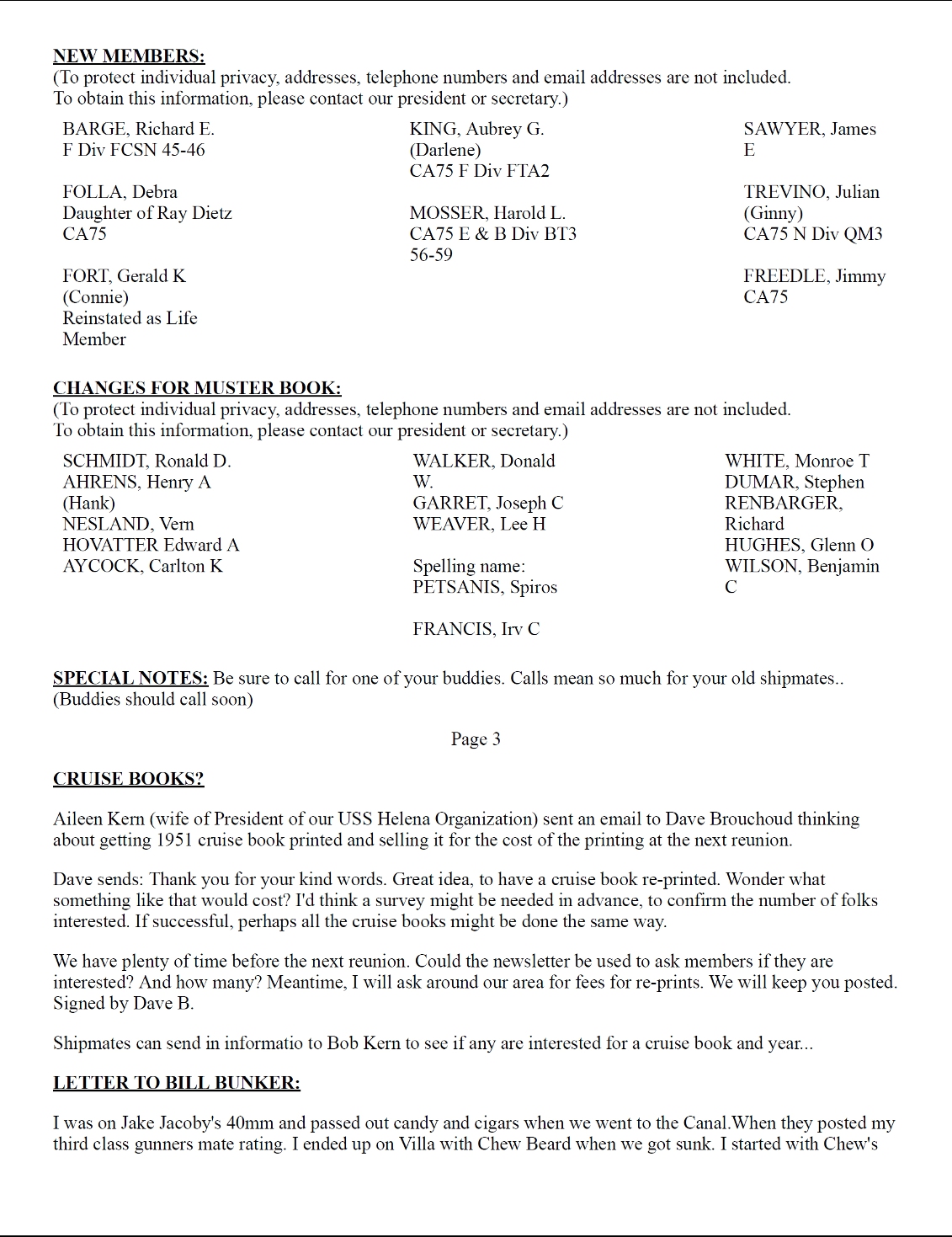 NEW MEMBERS CRUISE BOOKS LETTER TO BILL BUNKER