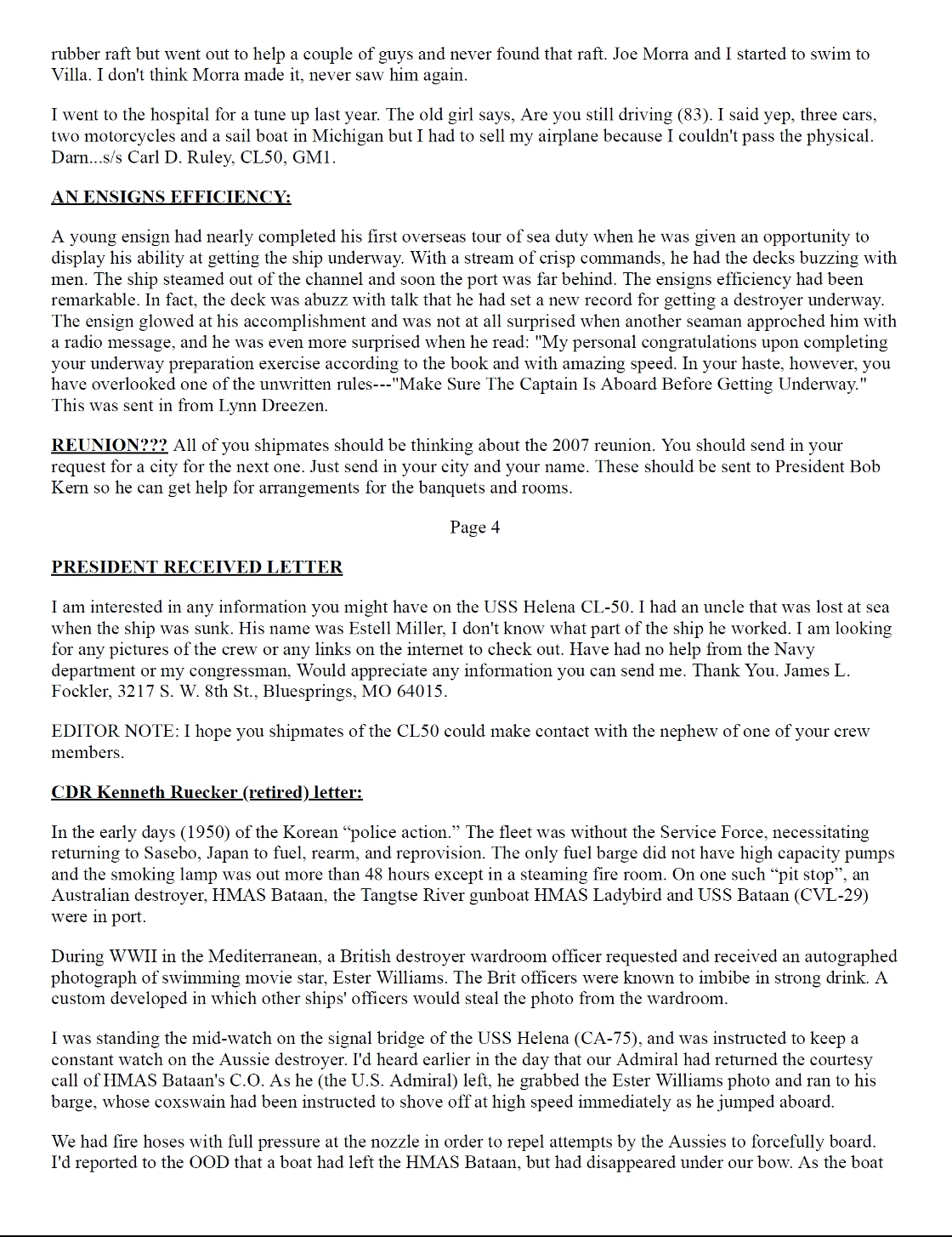 HEADLINE NEWS BILL BUNKER RESIGNS AS HEAD OF THE USS HELENA ORGANIZATION