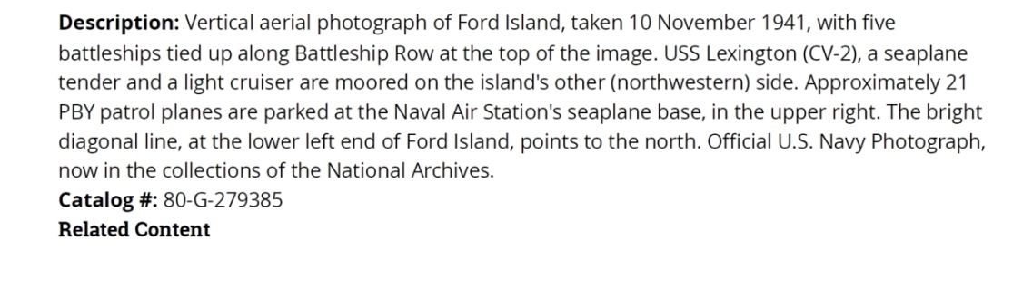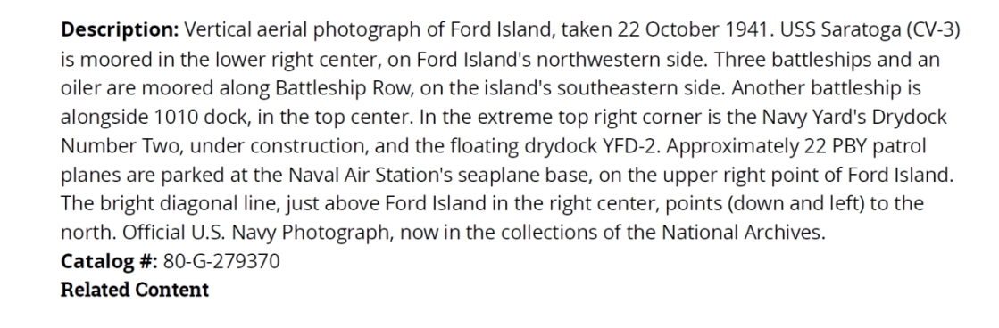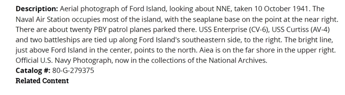 None of the carriers were in Pearl Harbor on 7 December 1941. Where Would the Enterprise Have Moored Two of the below aerial photos have the Saratoga and Lexington at