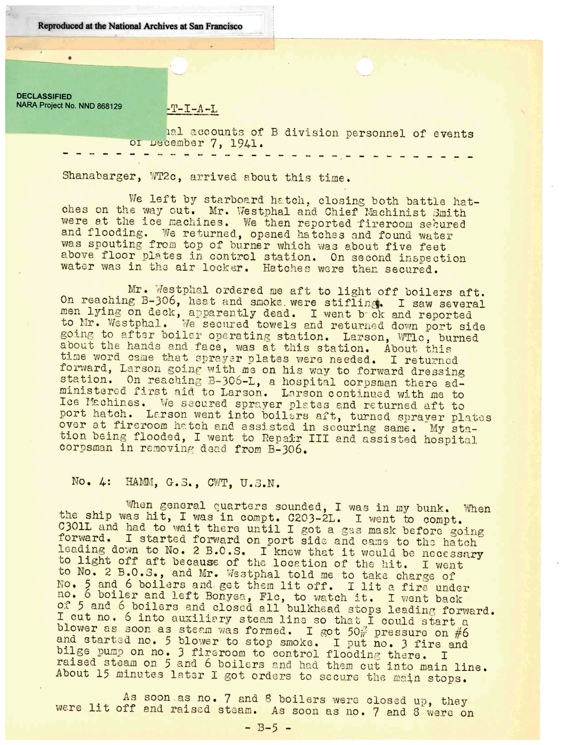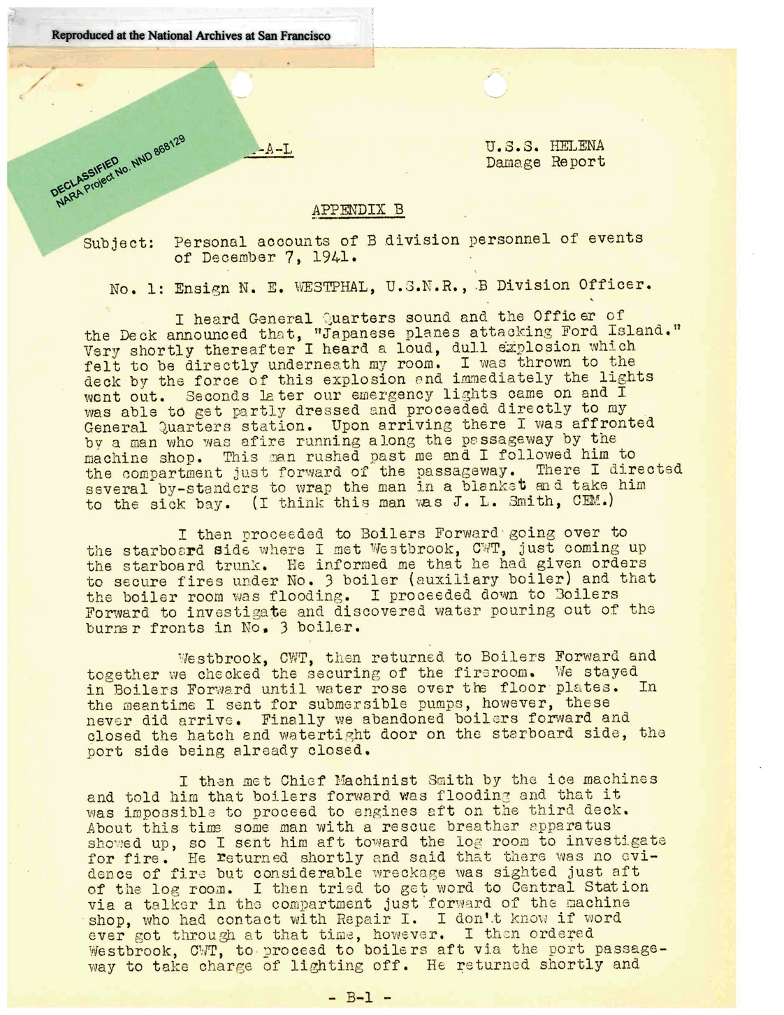 USS Helena at Pearl Harbor 7 December 1941 Personal Accounts Appendix B