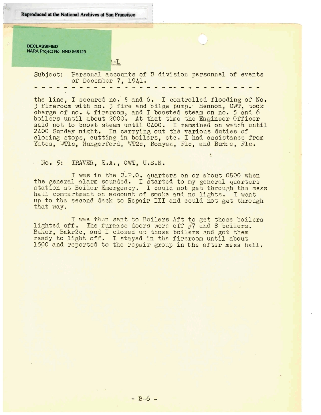 2. WT2c R. W. Baldwin begins B-3 3. CWT J.M. Westbrook begins B-4 4. CWT G.S. Hamm begins B-5 5. CWT E. A. Traver begins B-6
