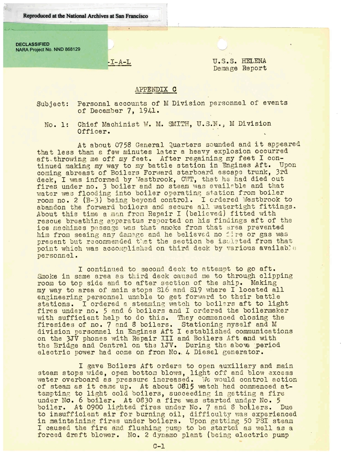 USS Helena at Pearl Harbor 7 December 1941 Personal Accounts Appendix C