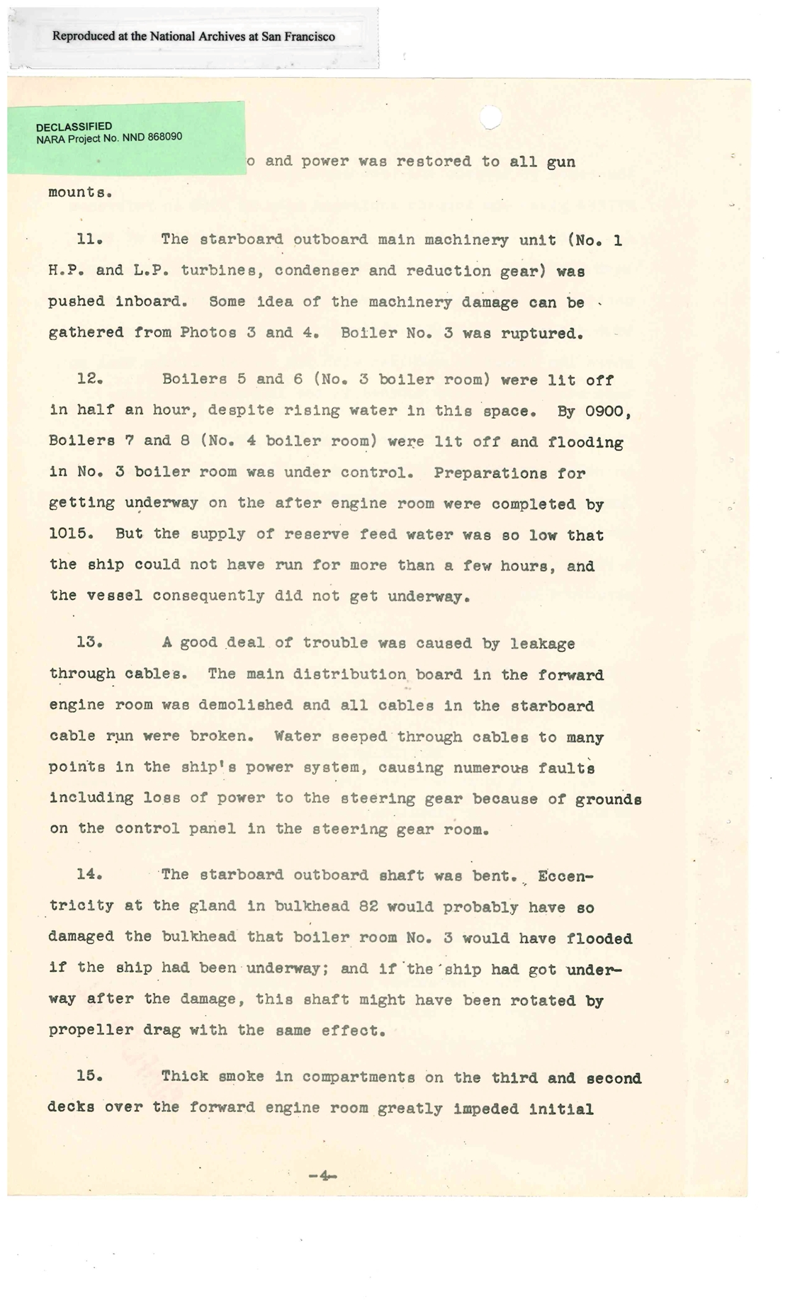 USS Helena at Pearl Harbor 7 December 1941 Torpedo and Bomb Damage