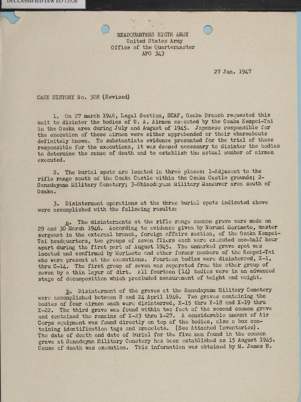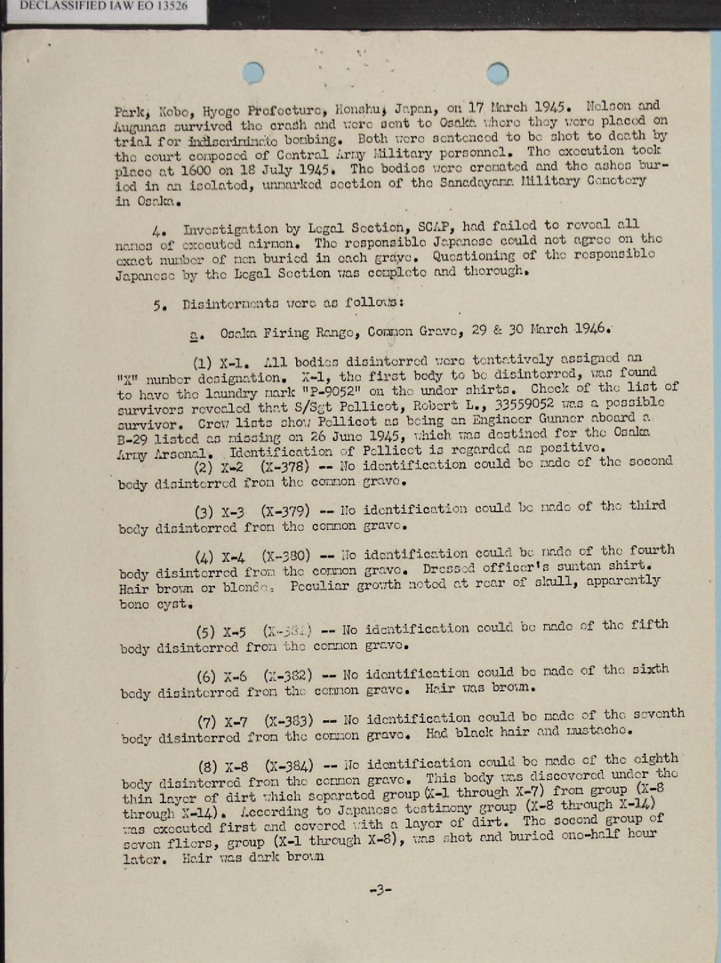 recovery and identification of the 55 men executed at Osaka.