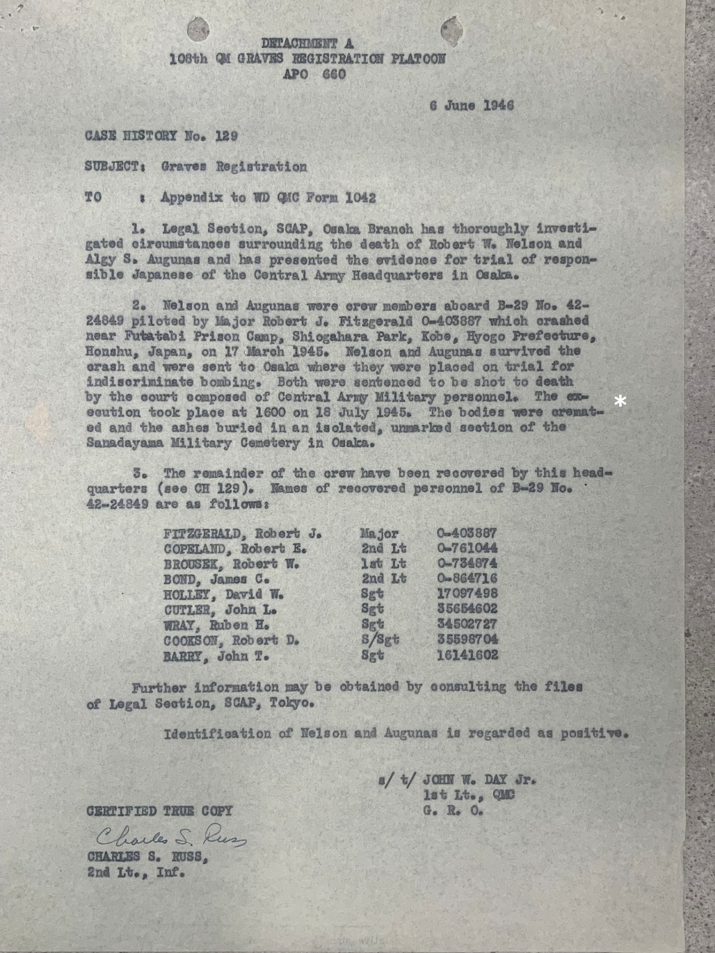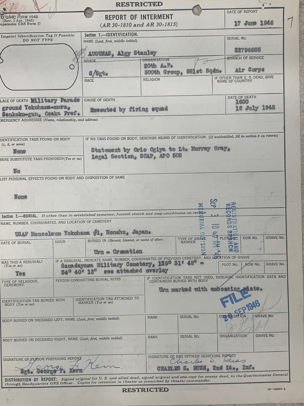 APPENDIX TO WAR DEPARTMENT NOTE: LOCATION OF EXECUTION NOT STATED |