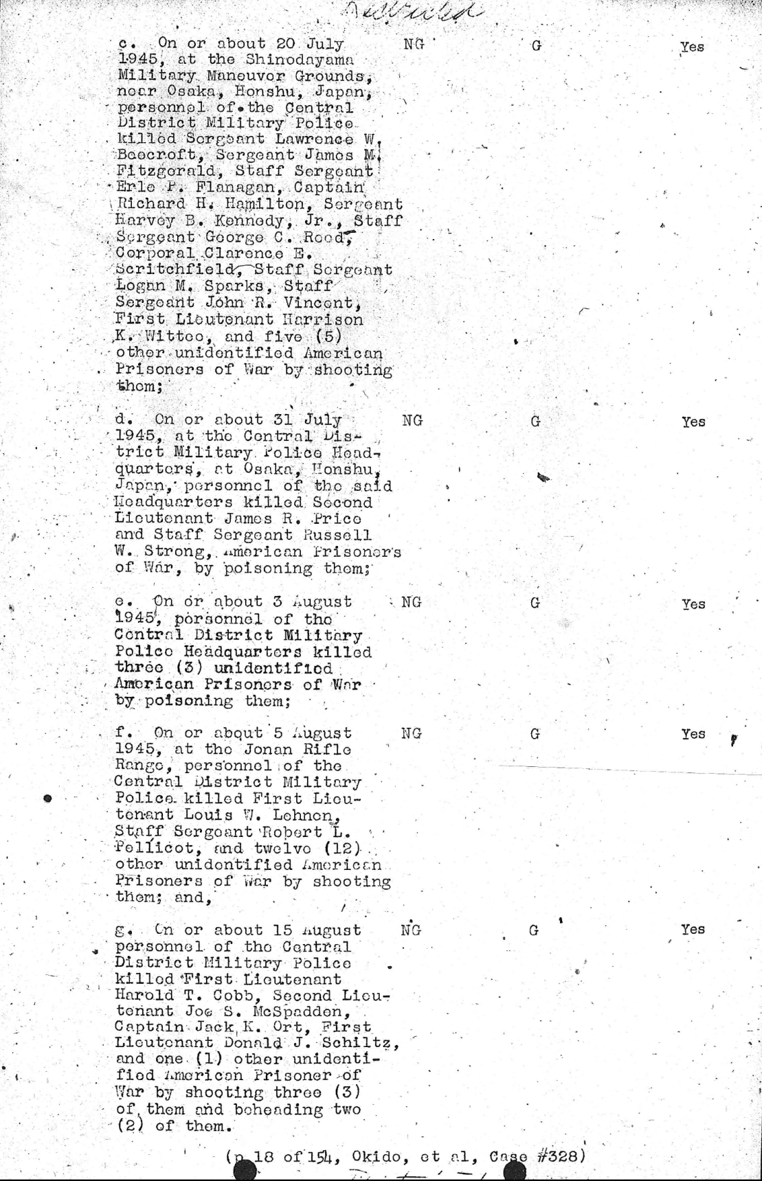 The below six pages are from the 157 pages of Yokohama Trial 328 Sgt Lawrence W Beecroft along several other men's names