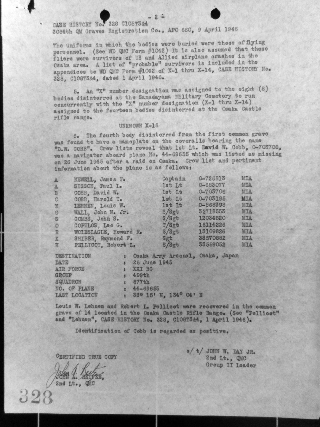 1 May 1946. These concern the Appendix to War Department QMC Form 1042. Lt Cobb's identity is established in Paragraph (b) (14) within the last page |