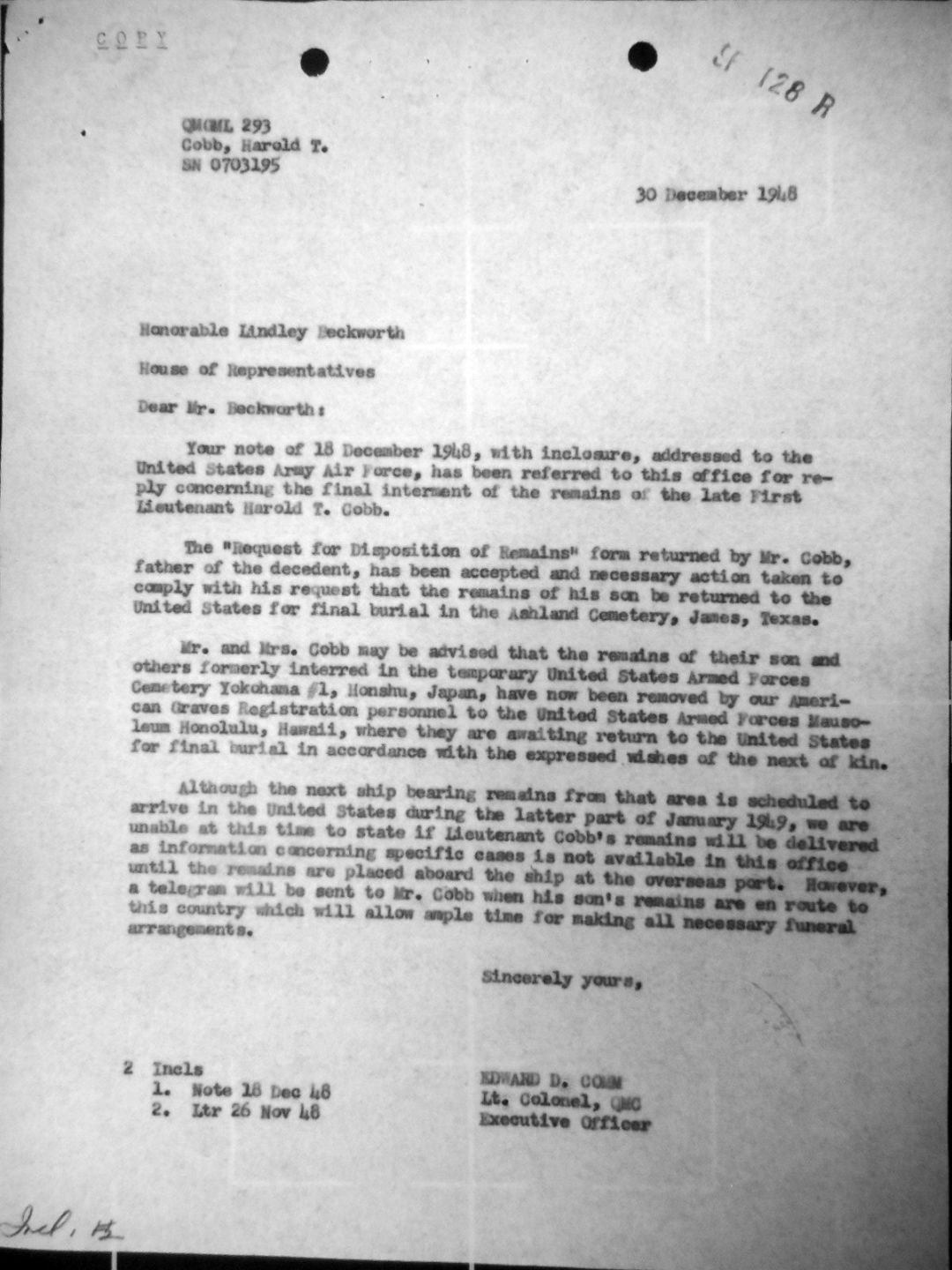 1st Lt Harold Tyrus Cobb