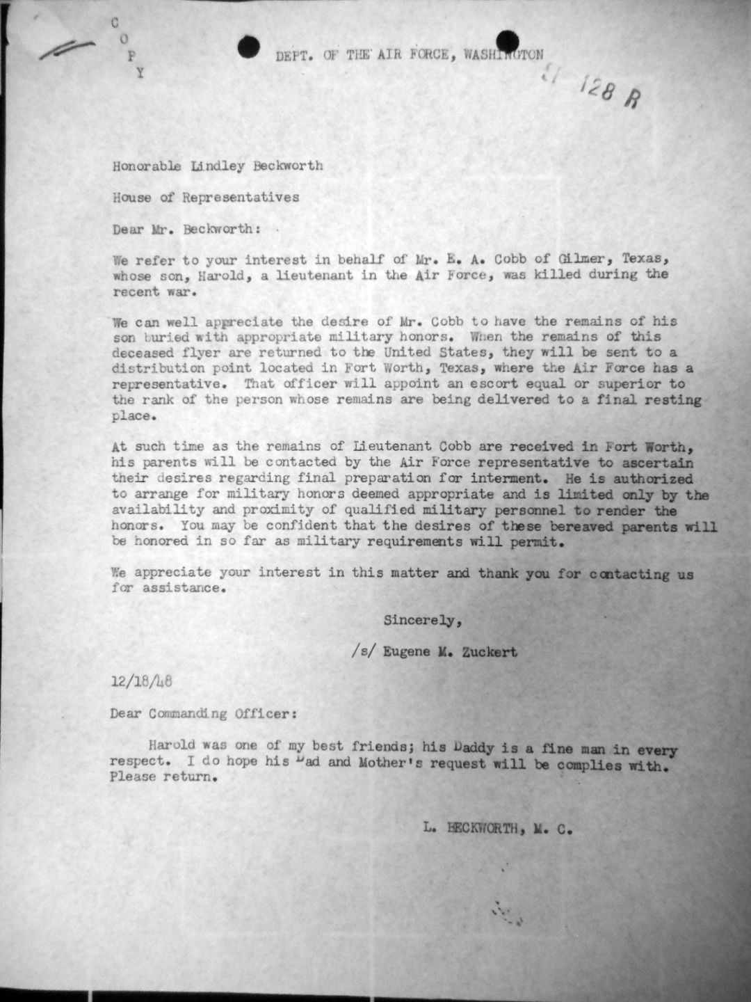Return to 1st Lt Harold Tyrus Cobb's Main Page