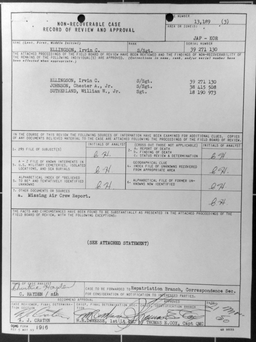 SSgt Irvin Casper Ellingson