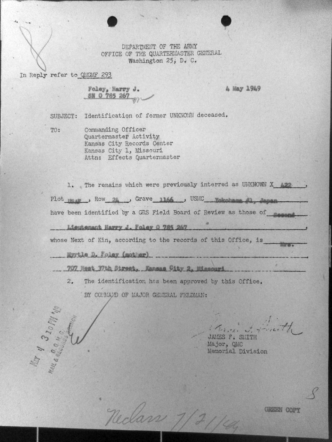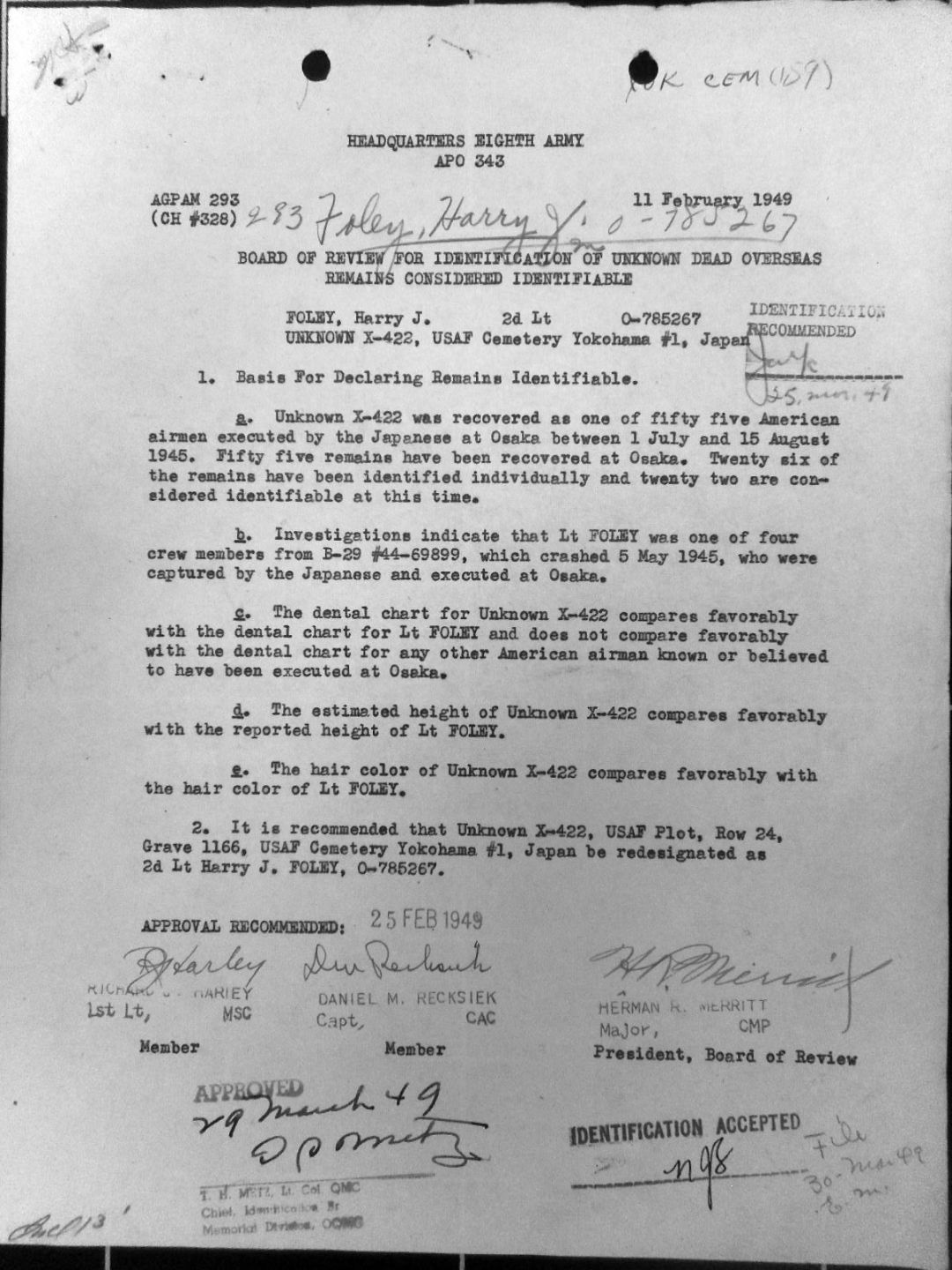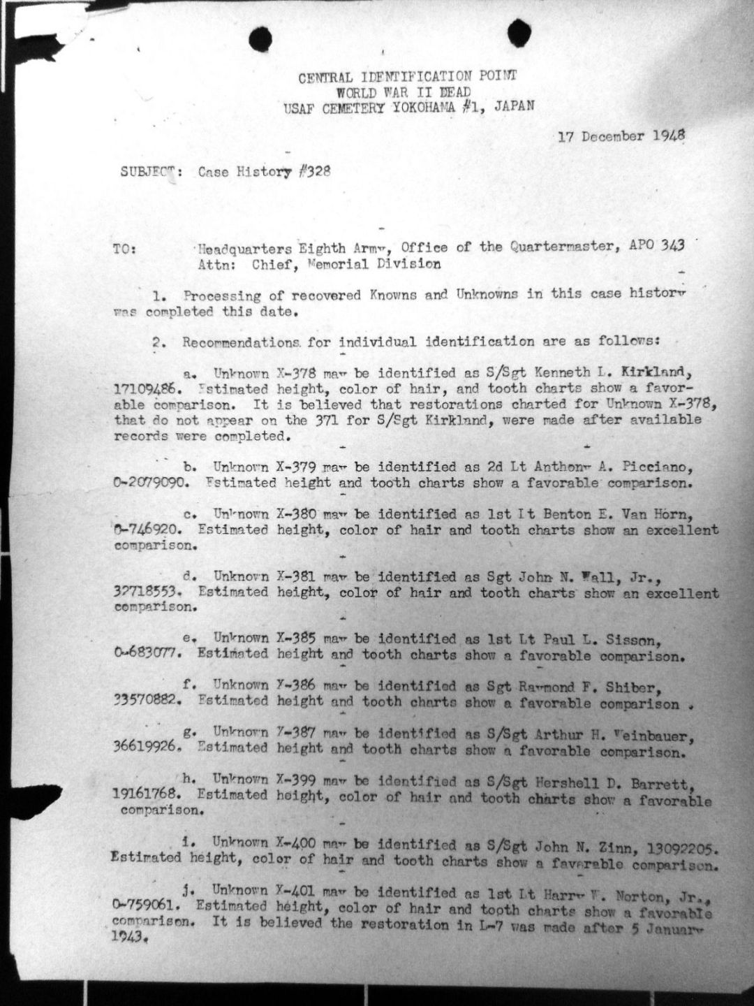 CENTRAL IDENTIFICATION POINT 17 DECEMBER 1948 |