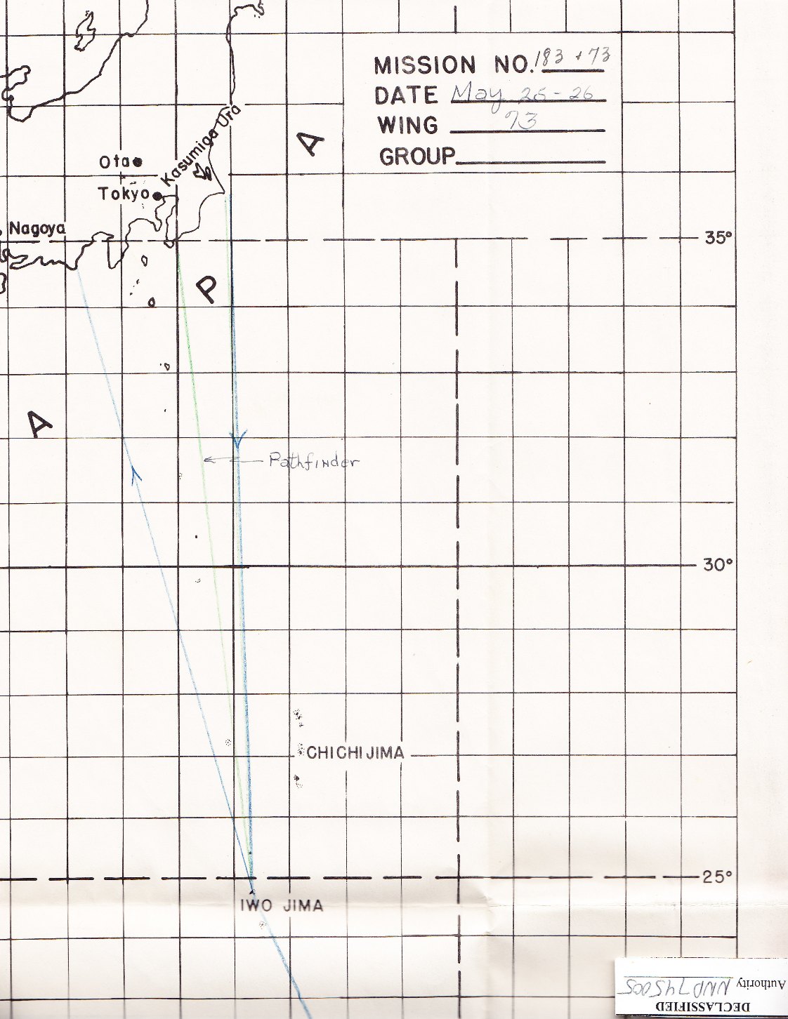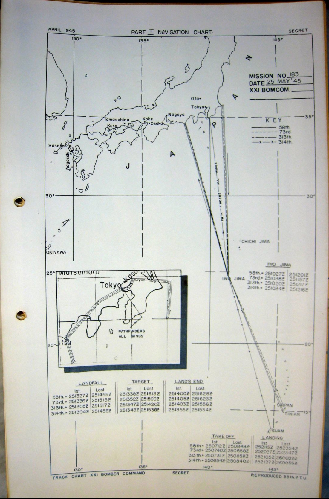 the second displays the track to and from Iwo Jima.