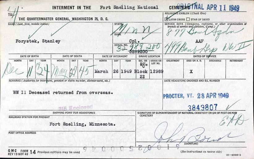 ![]() FORT SNELLING NATIONAL CEMETERY MINNEAPOLIS, MINNESOTA SOURCE: Find-a-Grave |