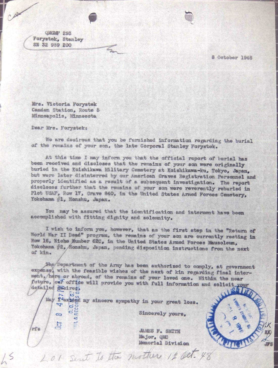 with a hand written date of 12 October 1948.