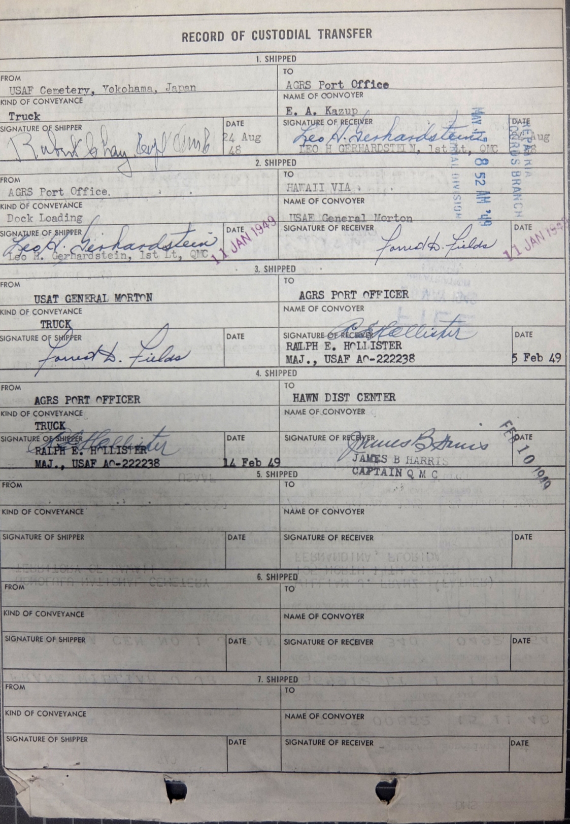 to the AGRS Port Facility in Yokohama on 28 August 1948.