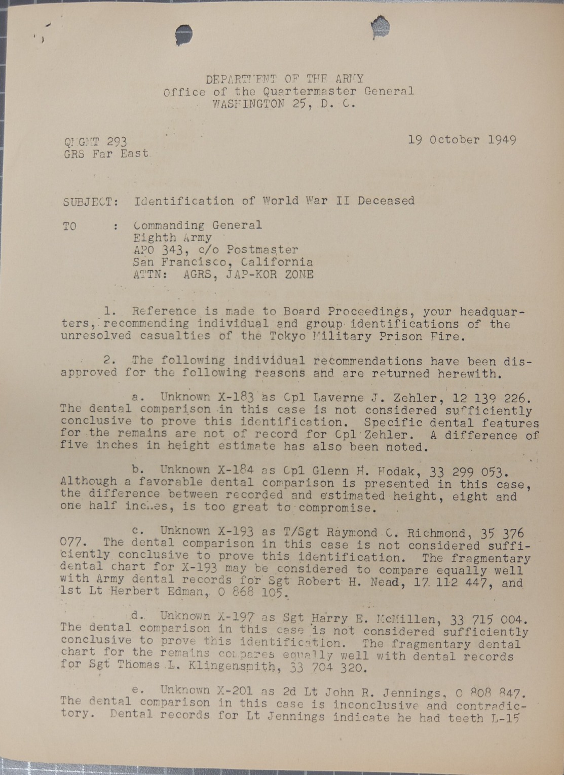 IDENTIFICATION OF WORLD WAR II DECEASED
