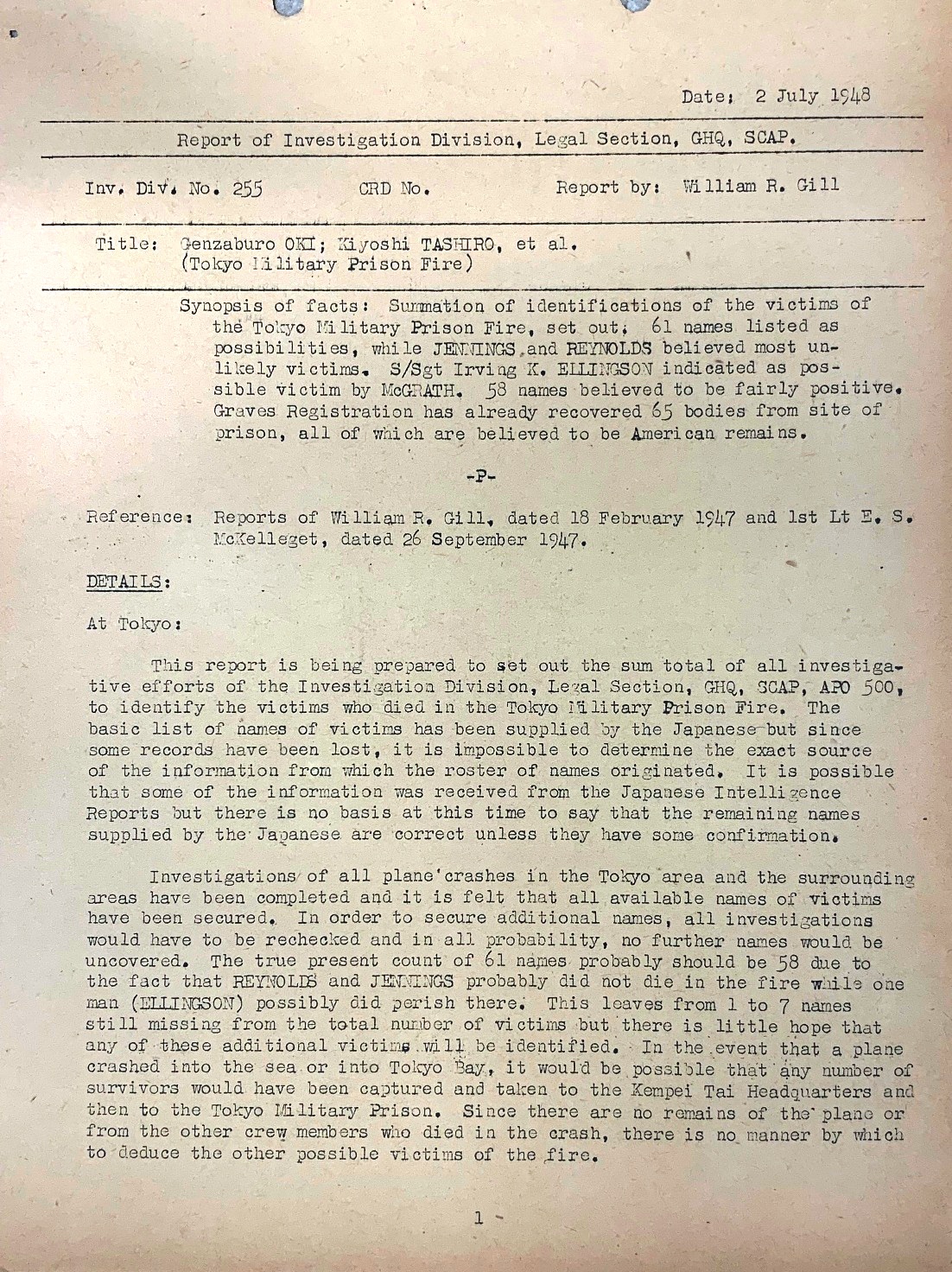 REPORT OF INVESTIGATION DIVISION, LEGAL SECTION |