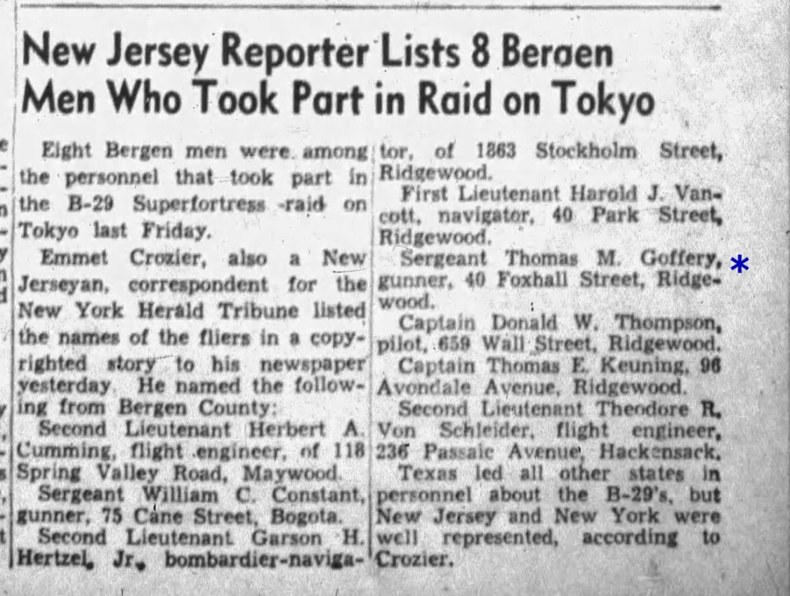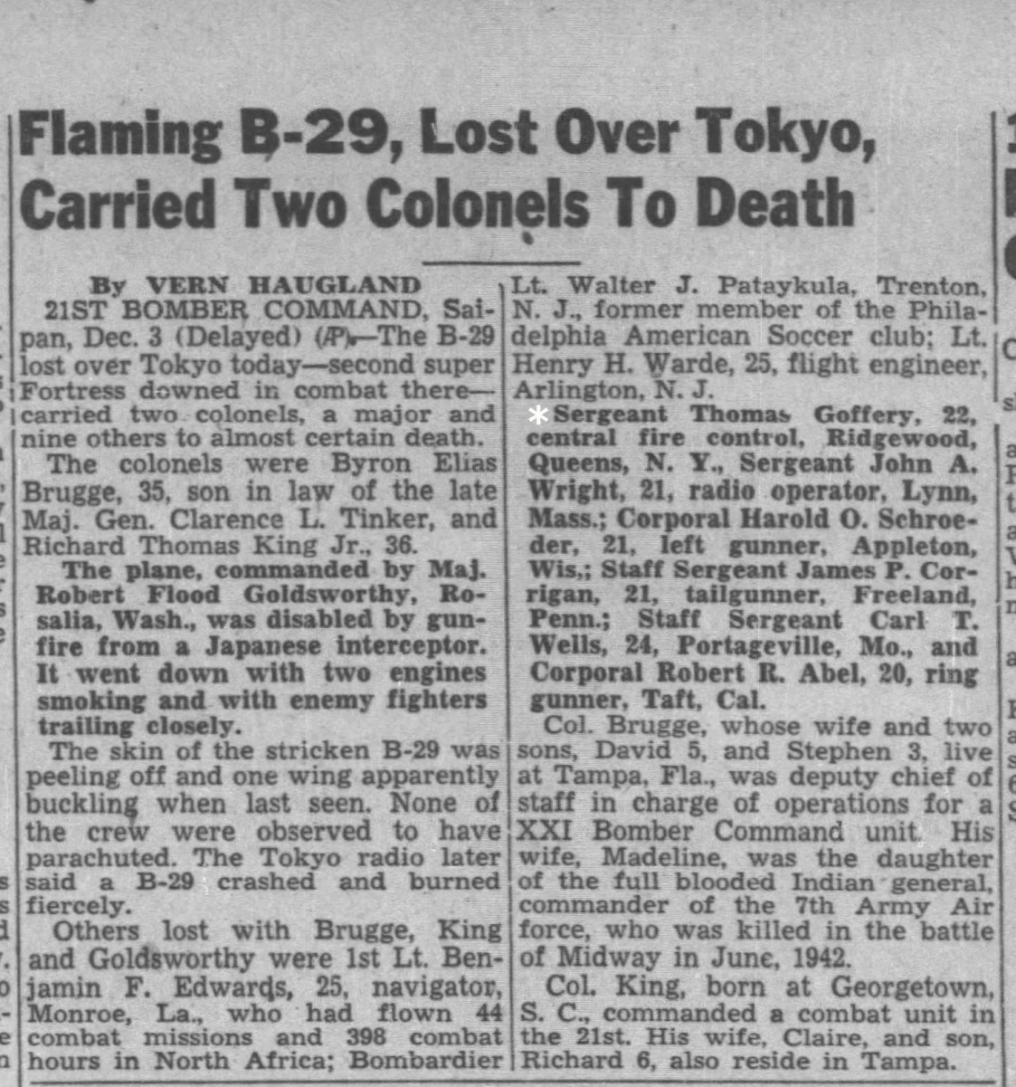 The source of these two newspaper clippings is The first is dated 27 November 1944 and lists the