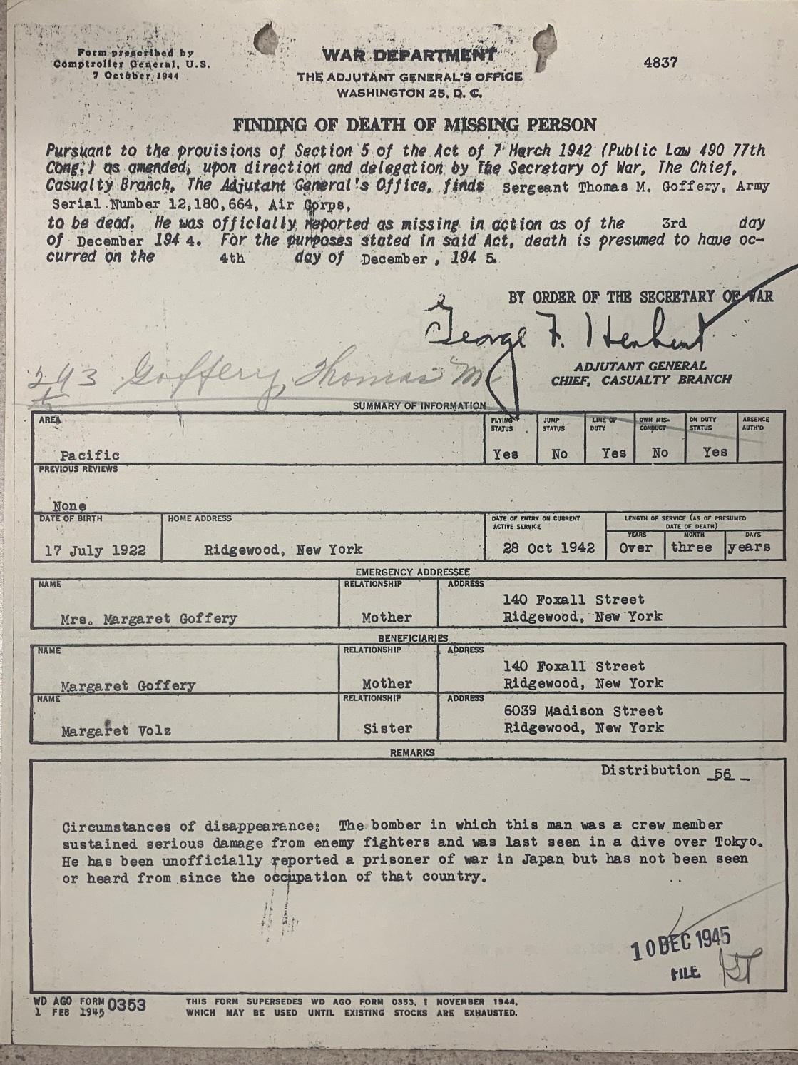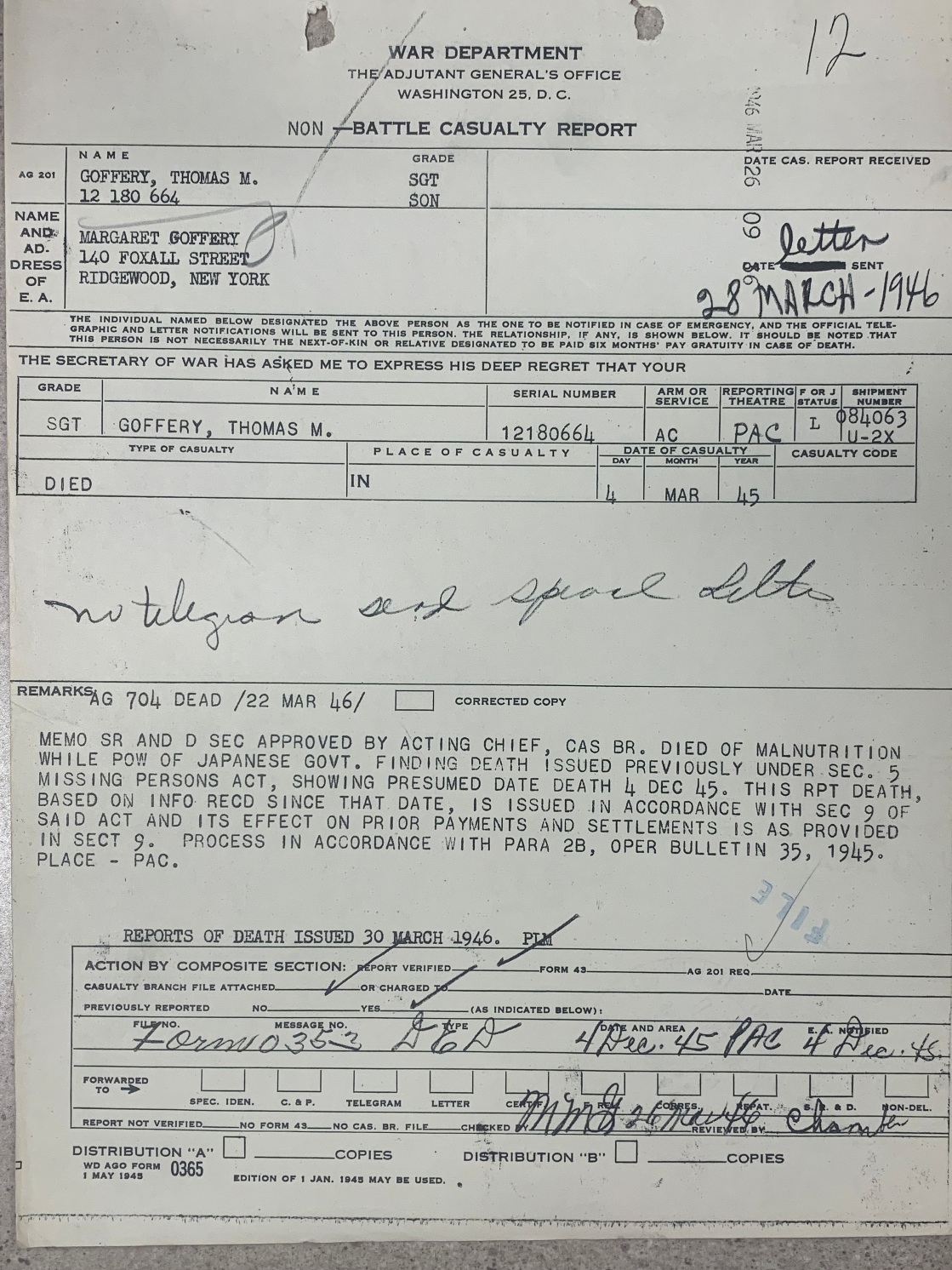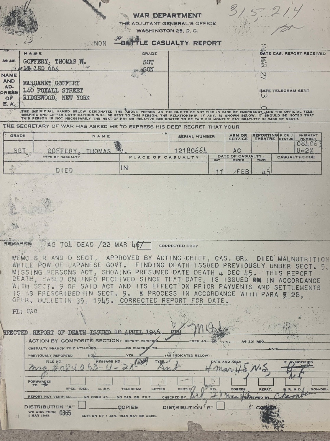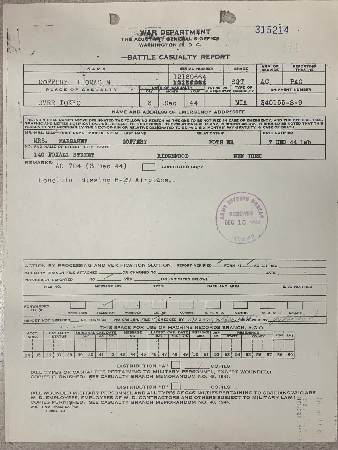 Within this page is one Battle Casualty Report Dated 7 December 1944