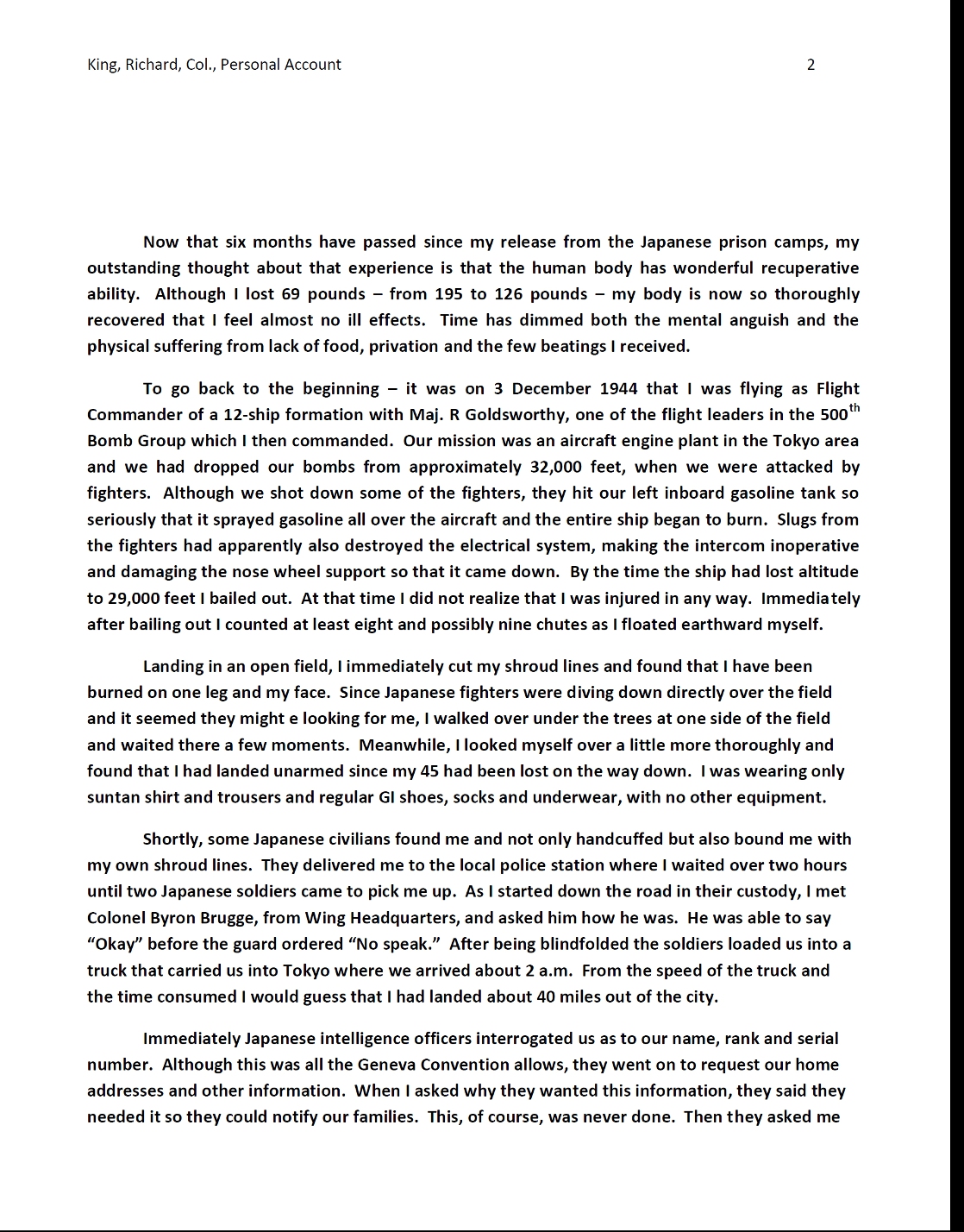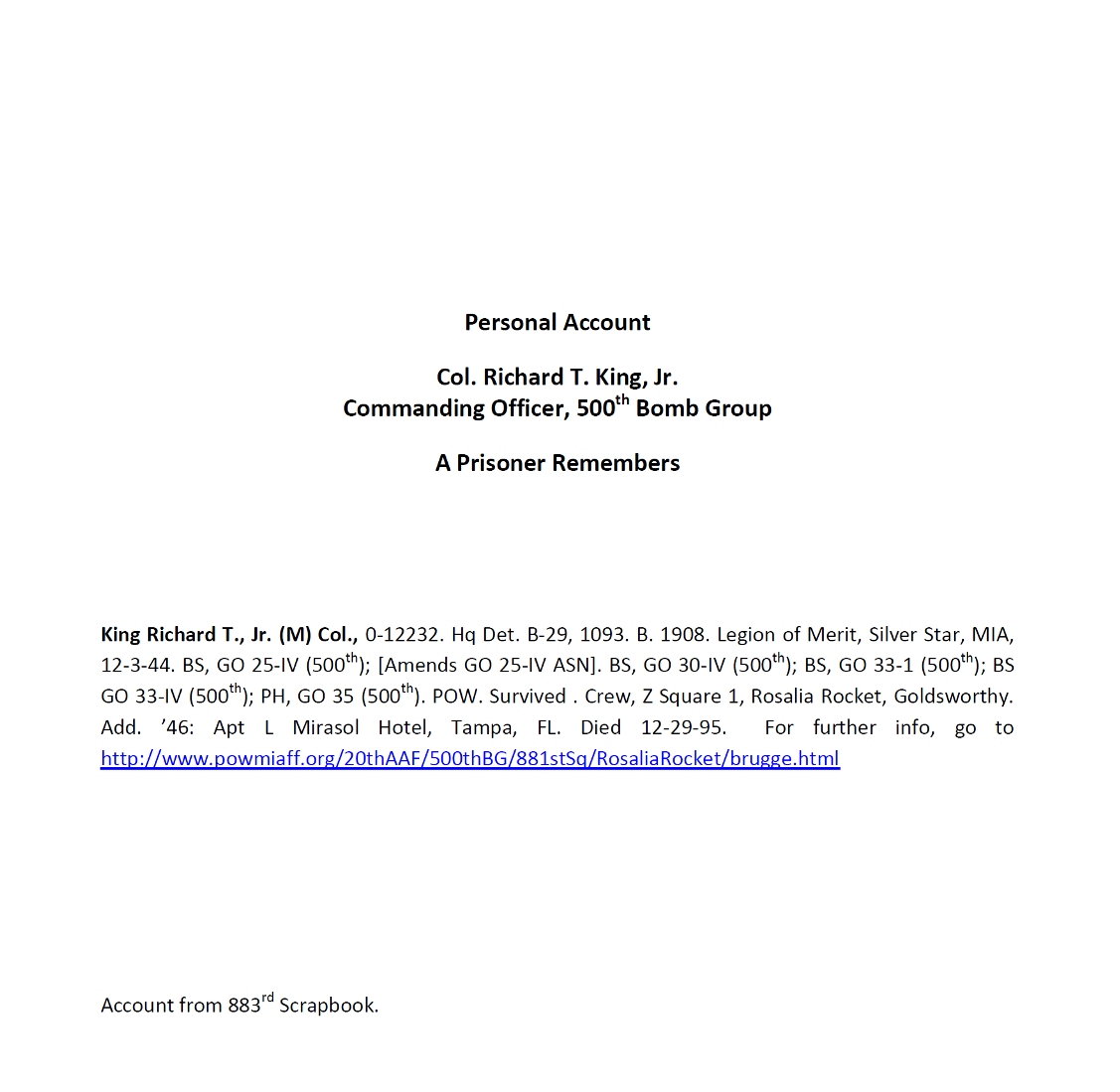 A brief biography of Col King is followed by source : 500th Bomb Group Memorial Association |