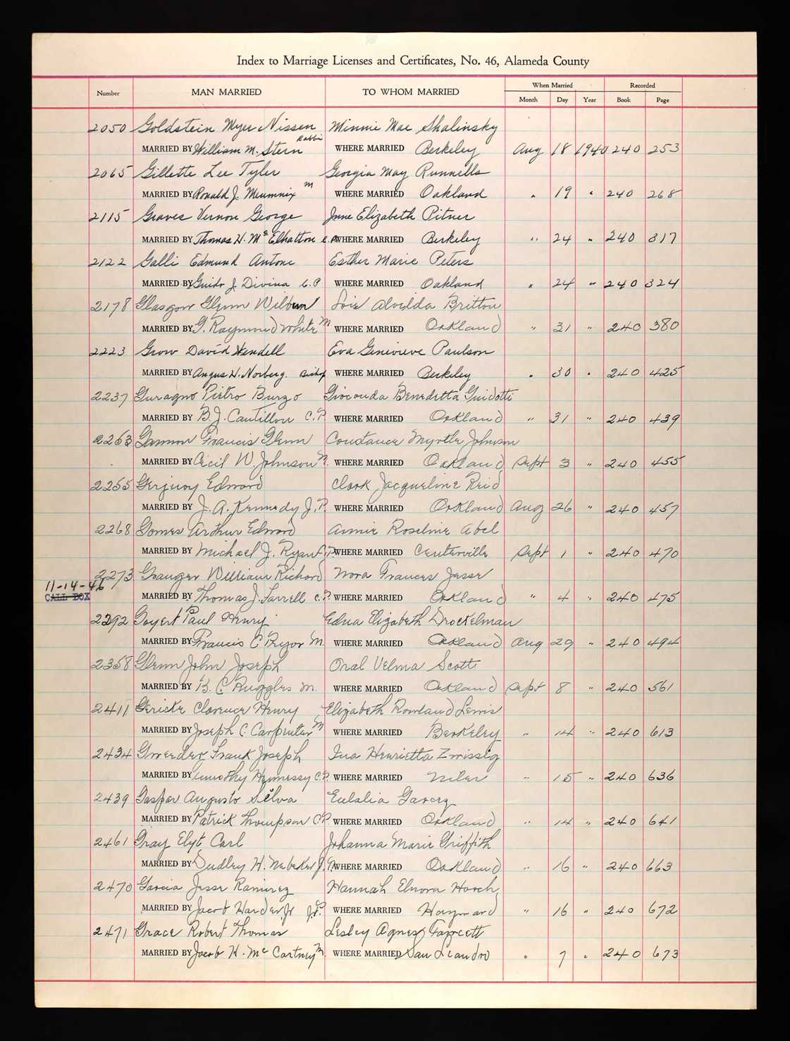 California. STATIONS March 1943 May 1943 February 1944 He was likely assigned to the 1st Lt Edmund G Smith crew around this time. Additional information is within the The Alameda County Index to Marriage Licenses and Certificates is