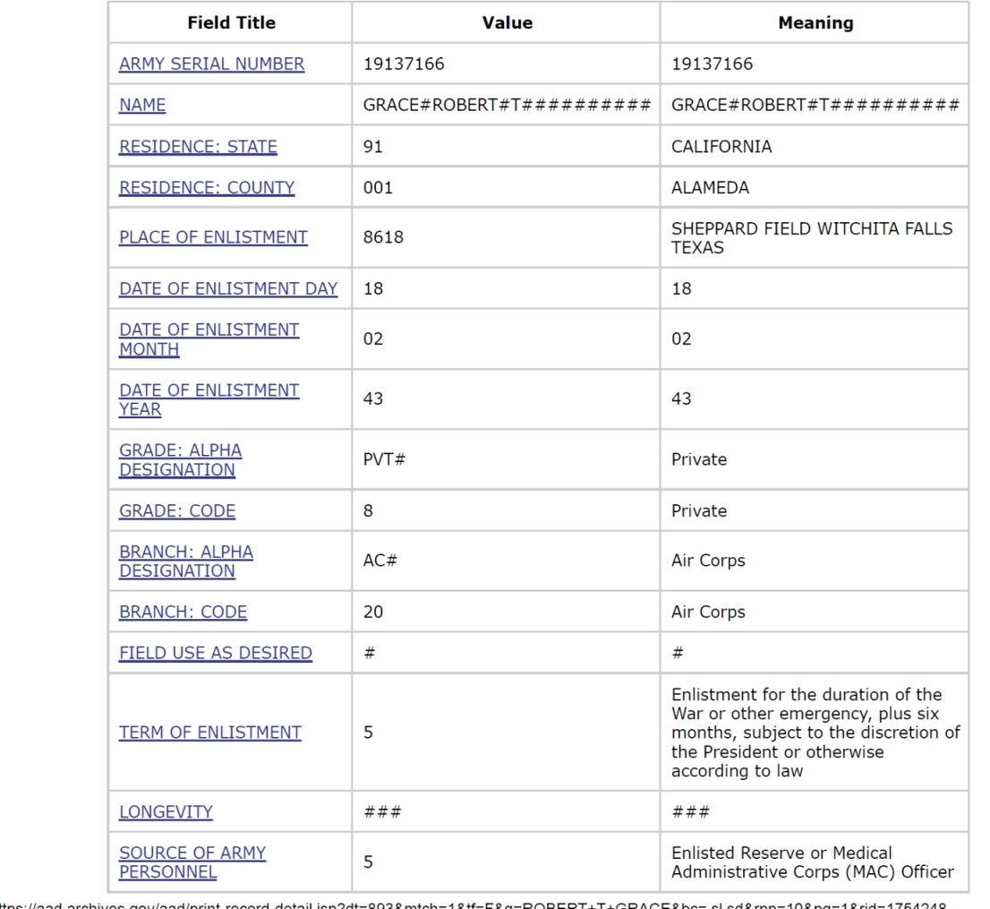 Prior to his Enlistment in February 1943, 2nd Lt Robert Grace's Robert Thomas Grace was born in St Louis, Missouri, on 9 February