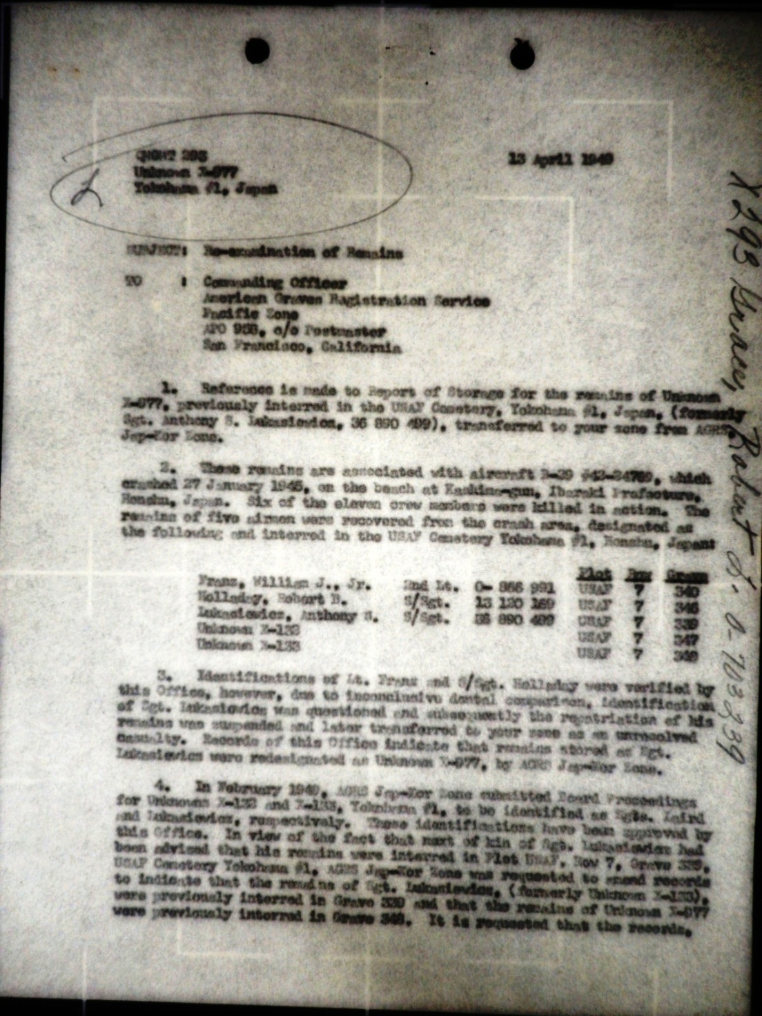 LETTER TO COMMANDER AMERICAN GRAVES REGISTRATION SERVICE |