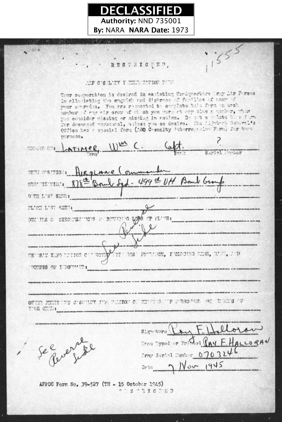 MACR 11555 STATEMENT BY LT HALLORAN CAPTAIN WILLIAM LATIMER