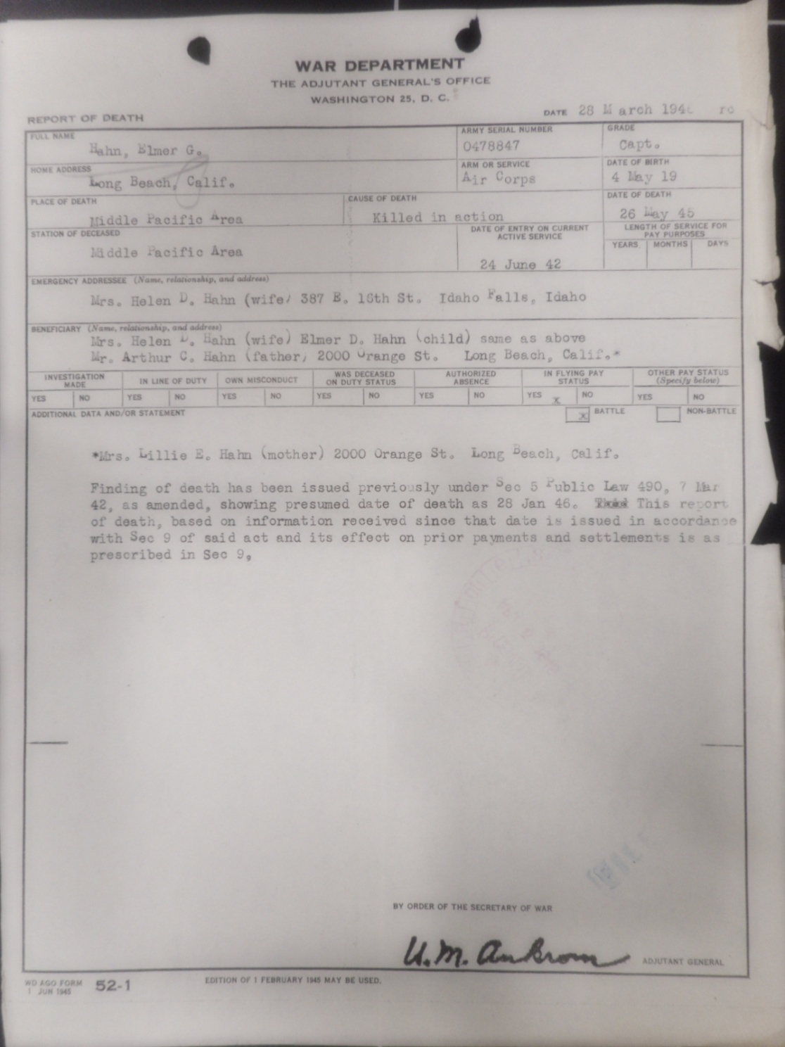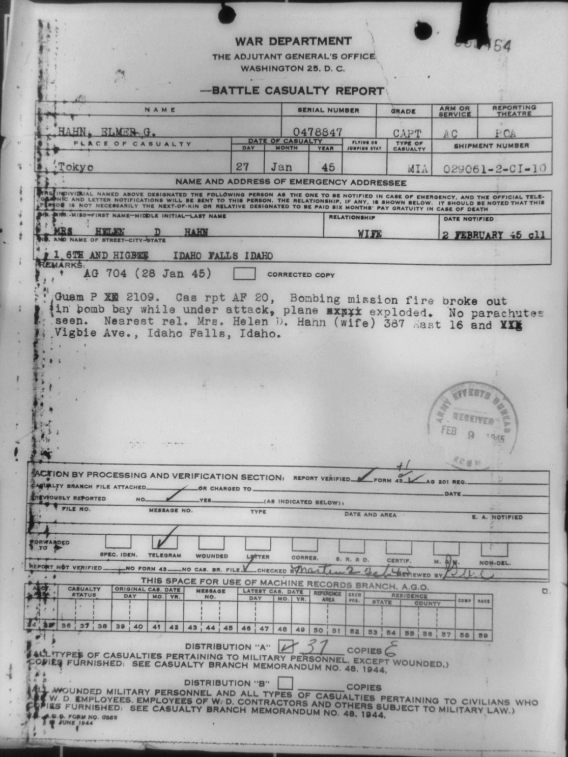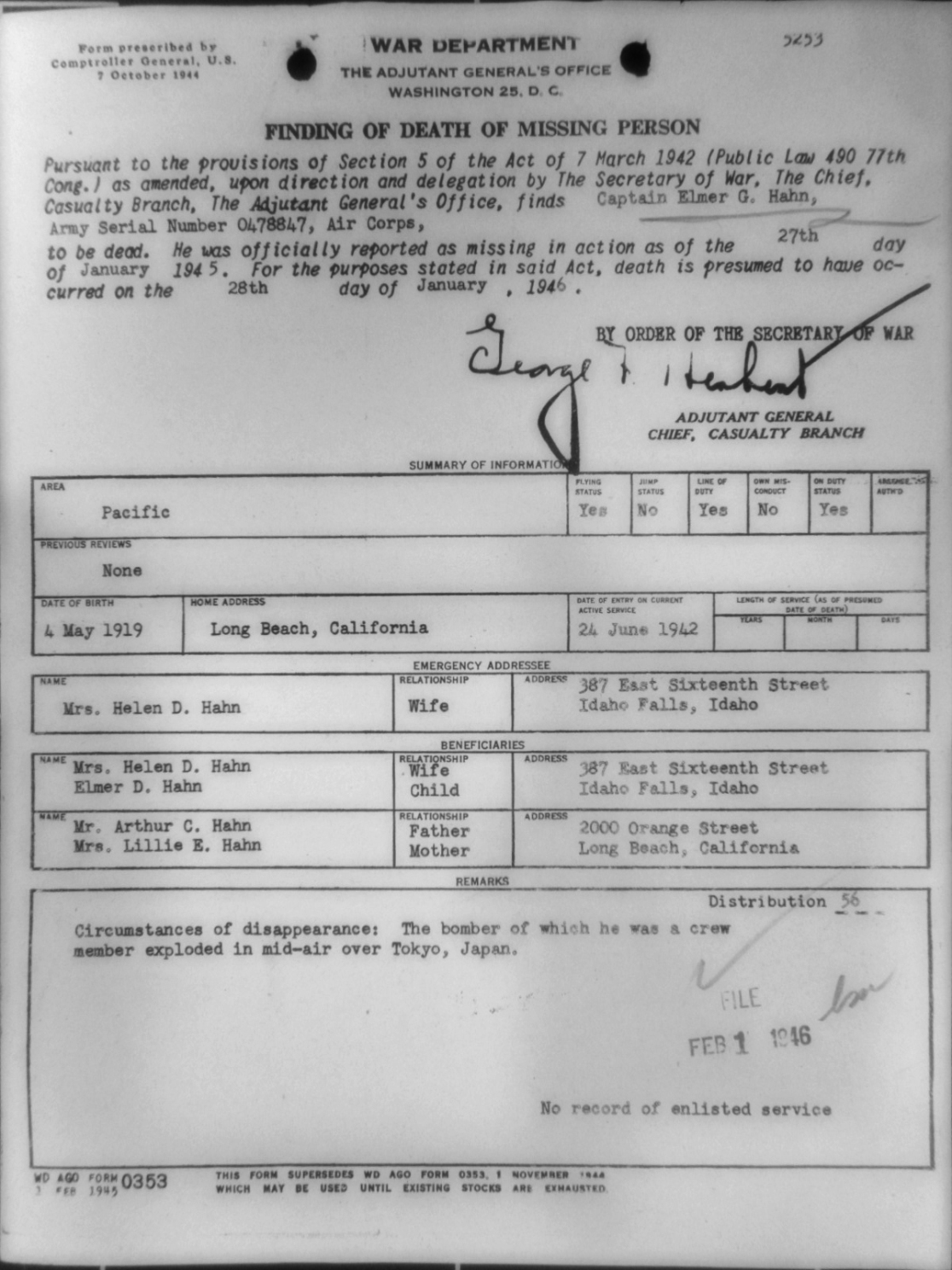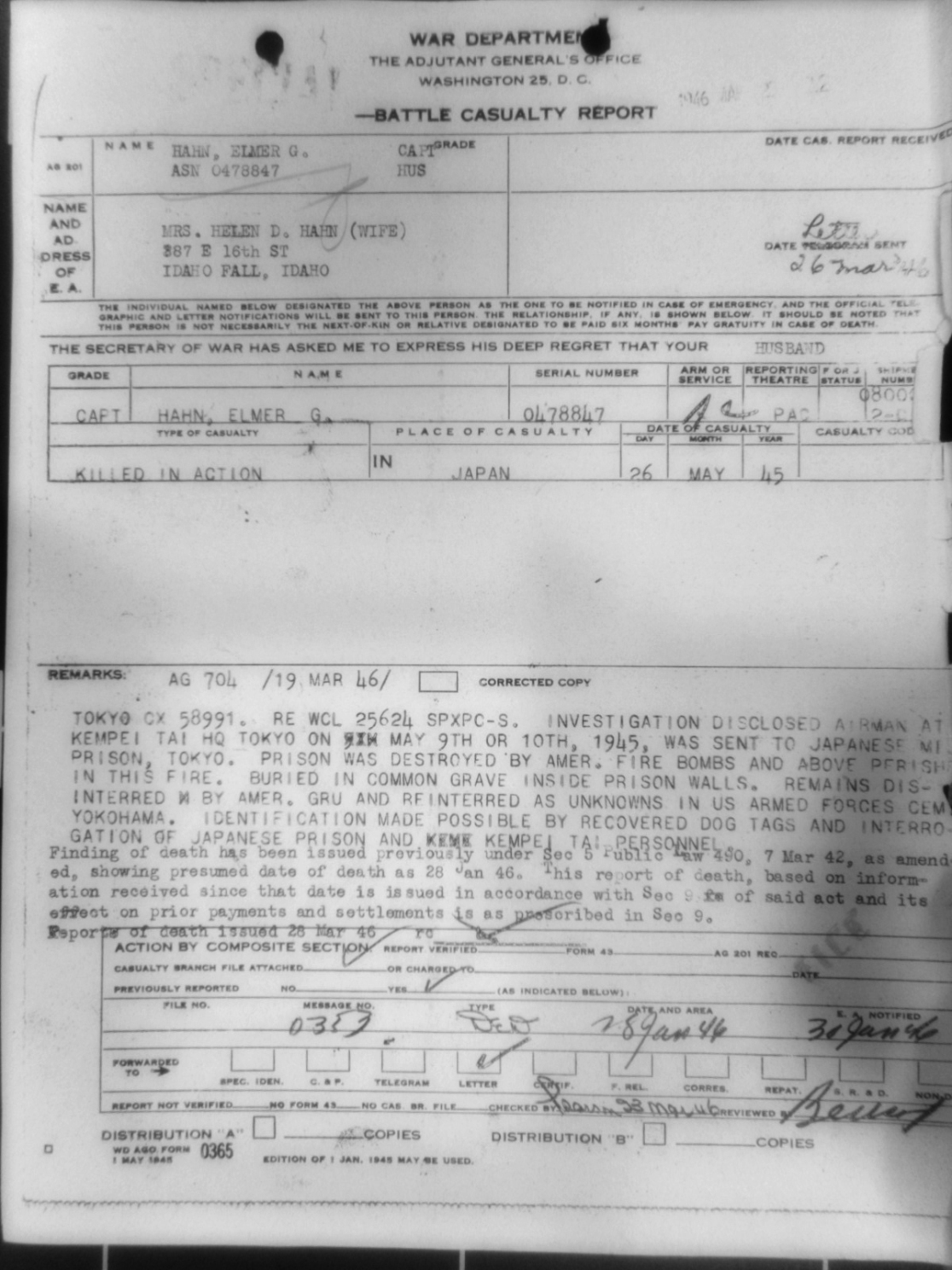 A second Battle Casualty Report (BCR) dated 26 March 1946 follows.