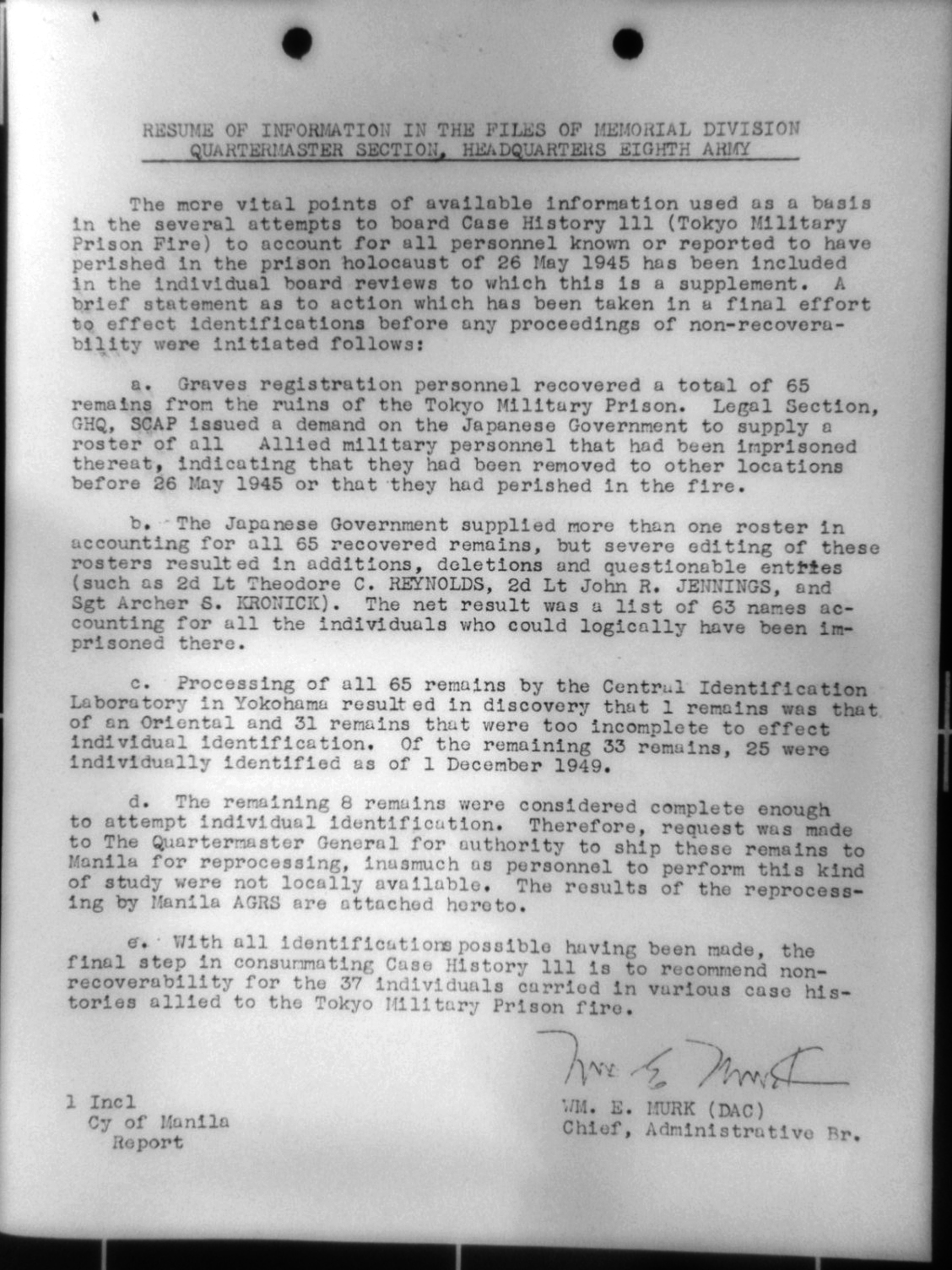 These ten pages of the Resume of Information are from Some of the information in the documents that follow are dated 1948