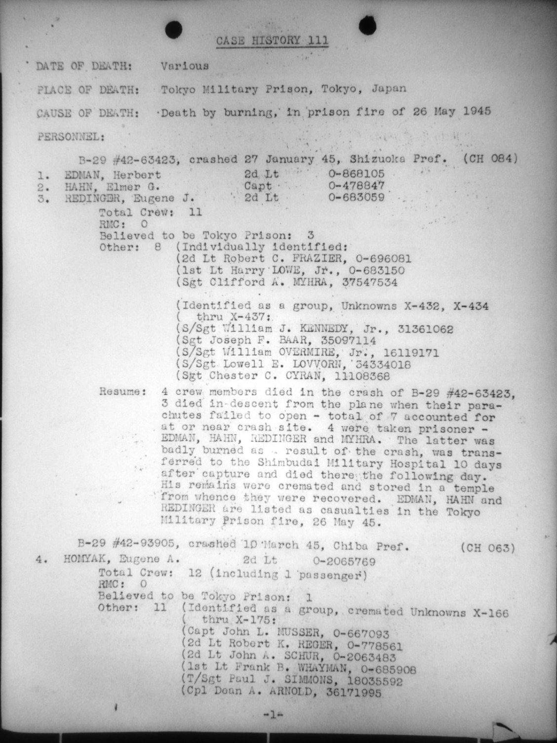 and 1949. Capt Elmer Hahn, Lt Herbert Edman, and Lt Eugene Redinger's |