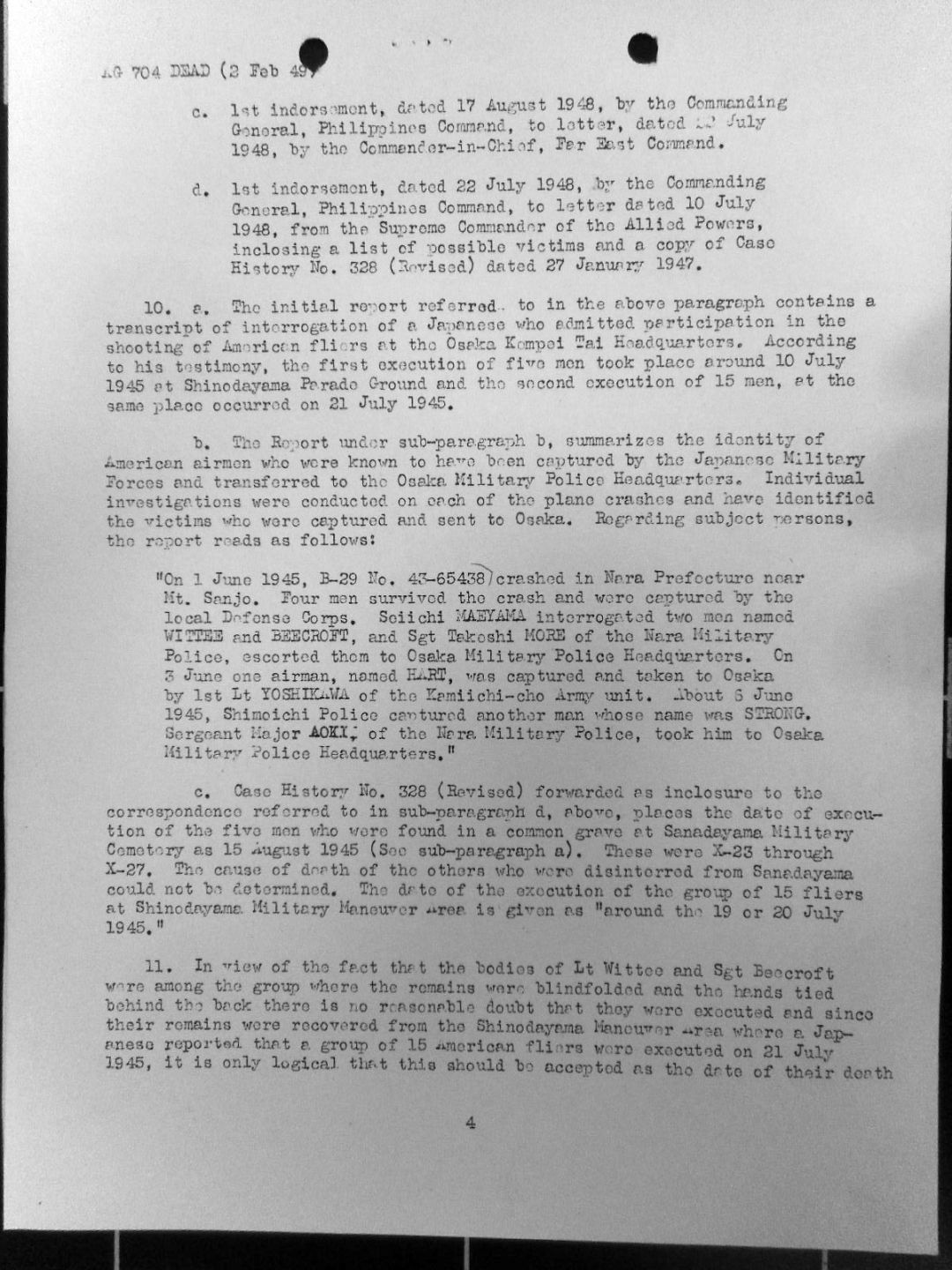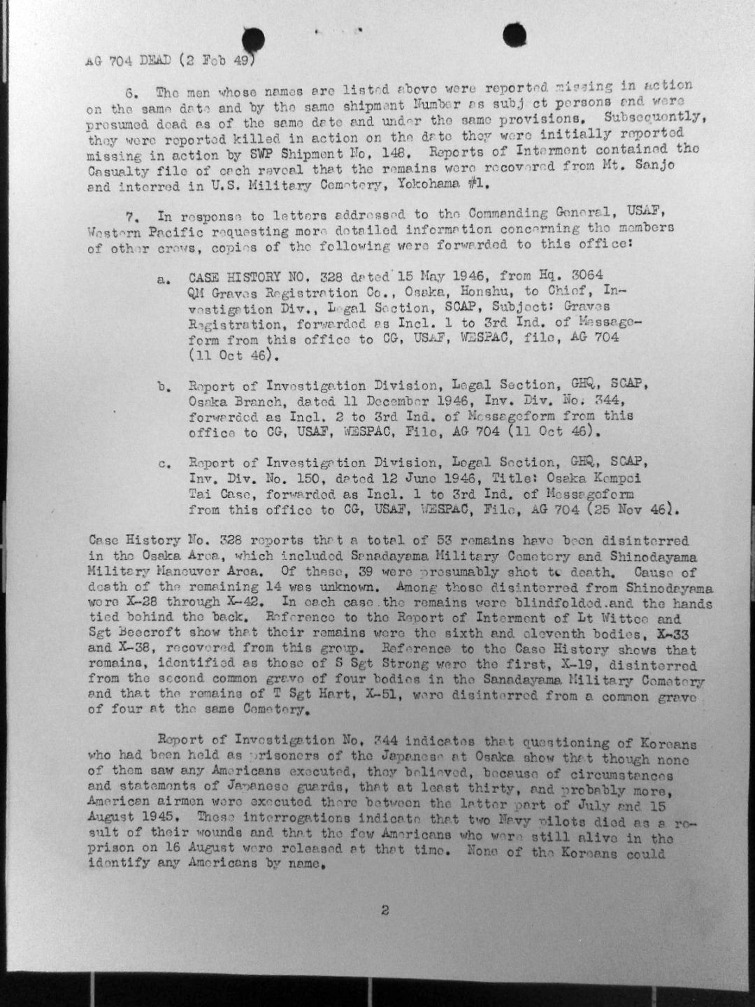TSgt Alvin Relvue Hart Osaka Castle Official Documents Page 2