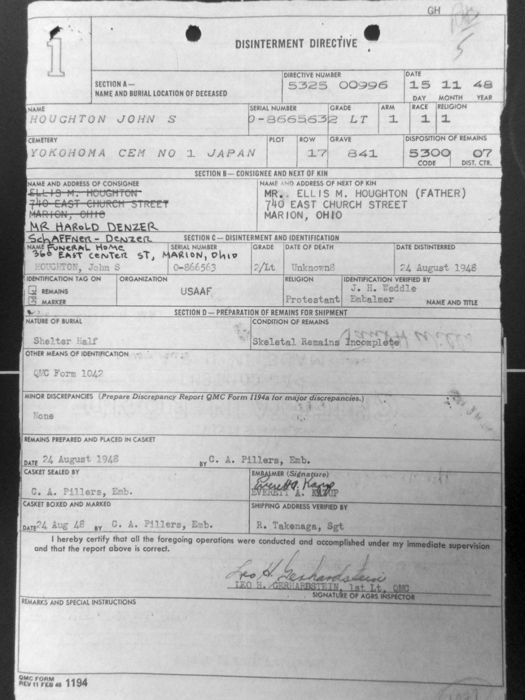 2nd Lt John Snyder Houghton Tokyo Kempei Tai Koishikawa Military Cemetery Coming Home Page 2