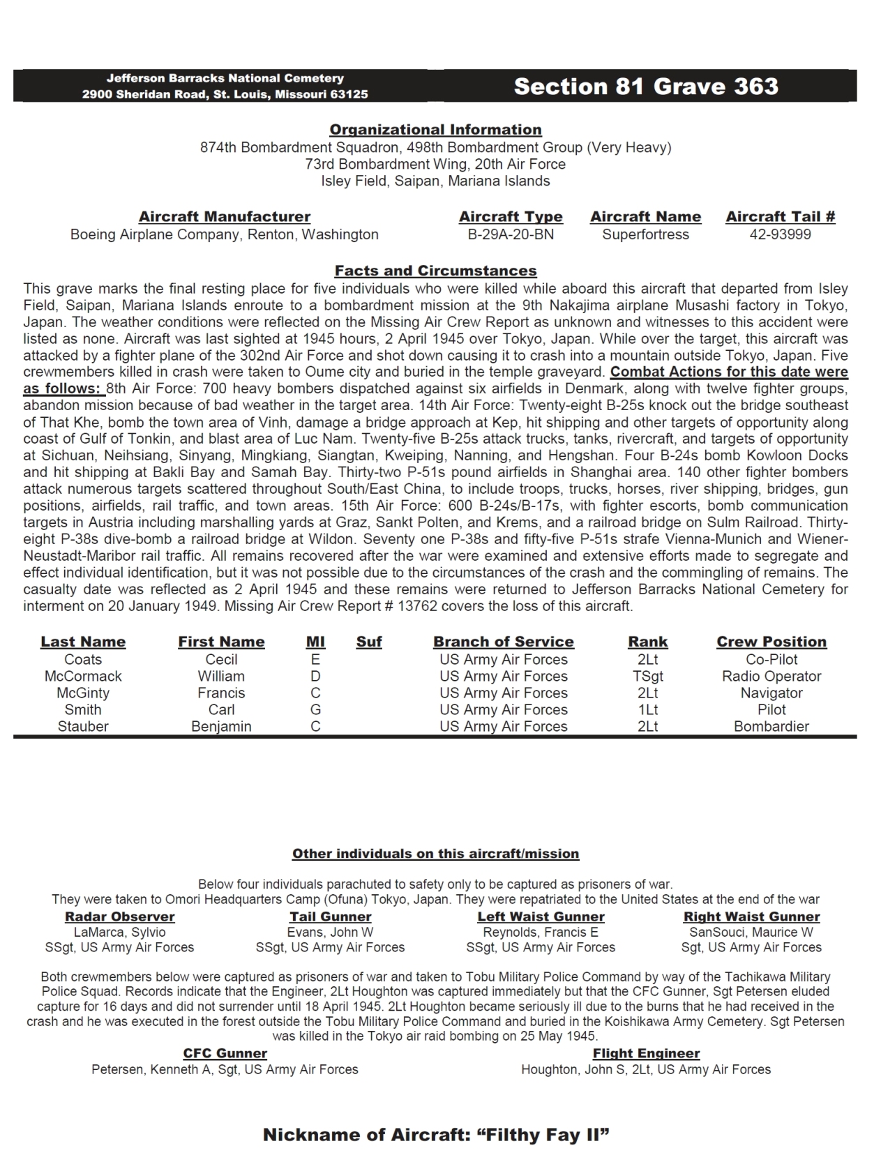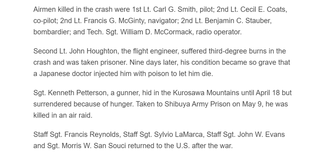 2nd Lt John Snyder Houghton Tokyo Kempei Tai Koishikawa Military Cemetery 1st Lt Carl Smith Crew Page 3
