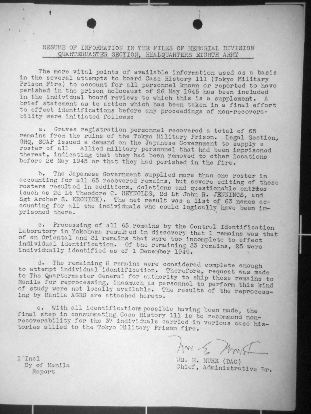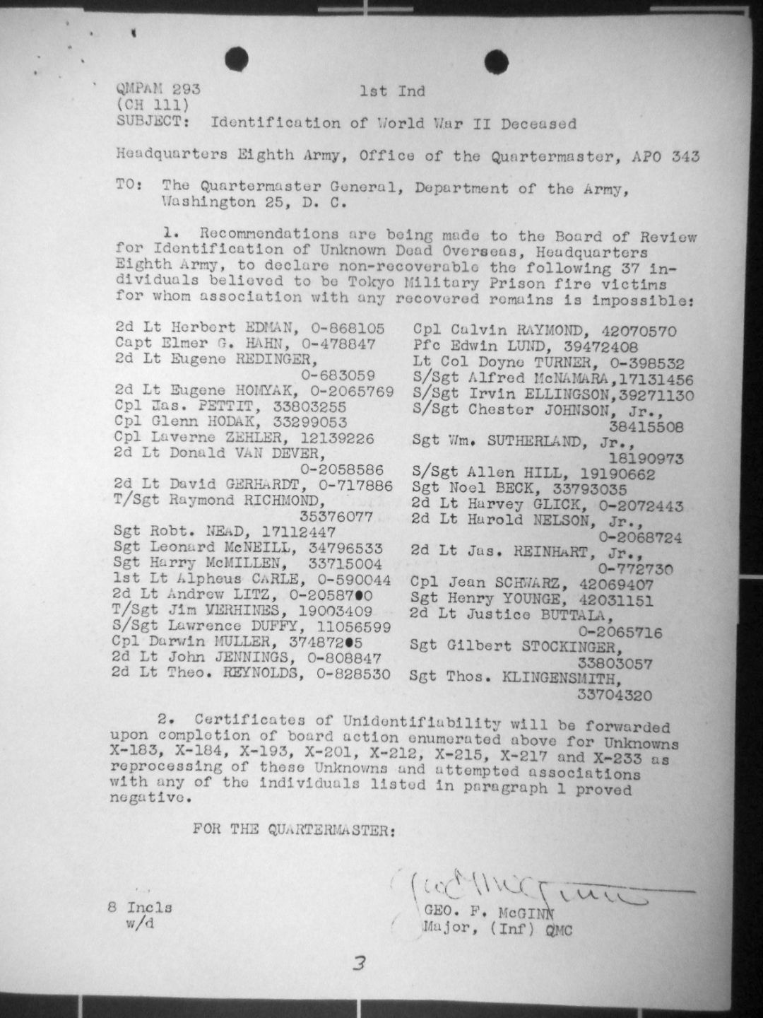 SSgt Chester Arthur Johnson, Jr Tokyo Military Prison Fire Non-Recoverable Remains Page 3