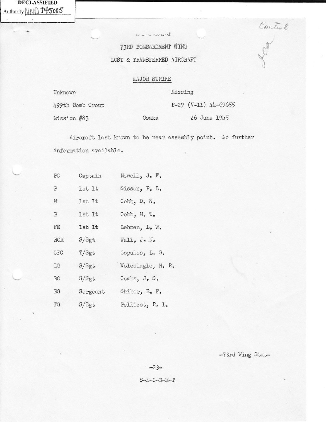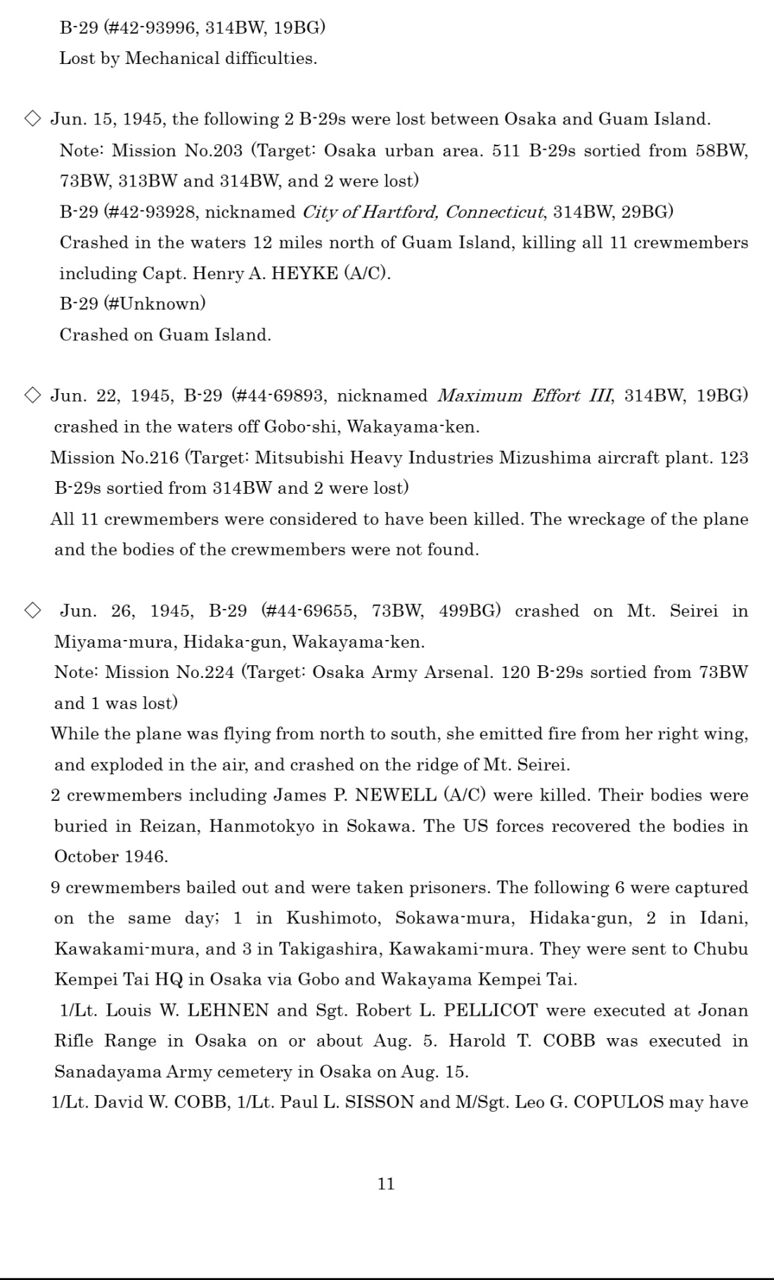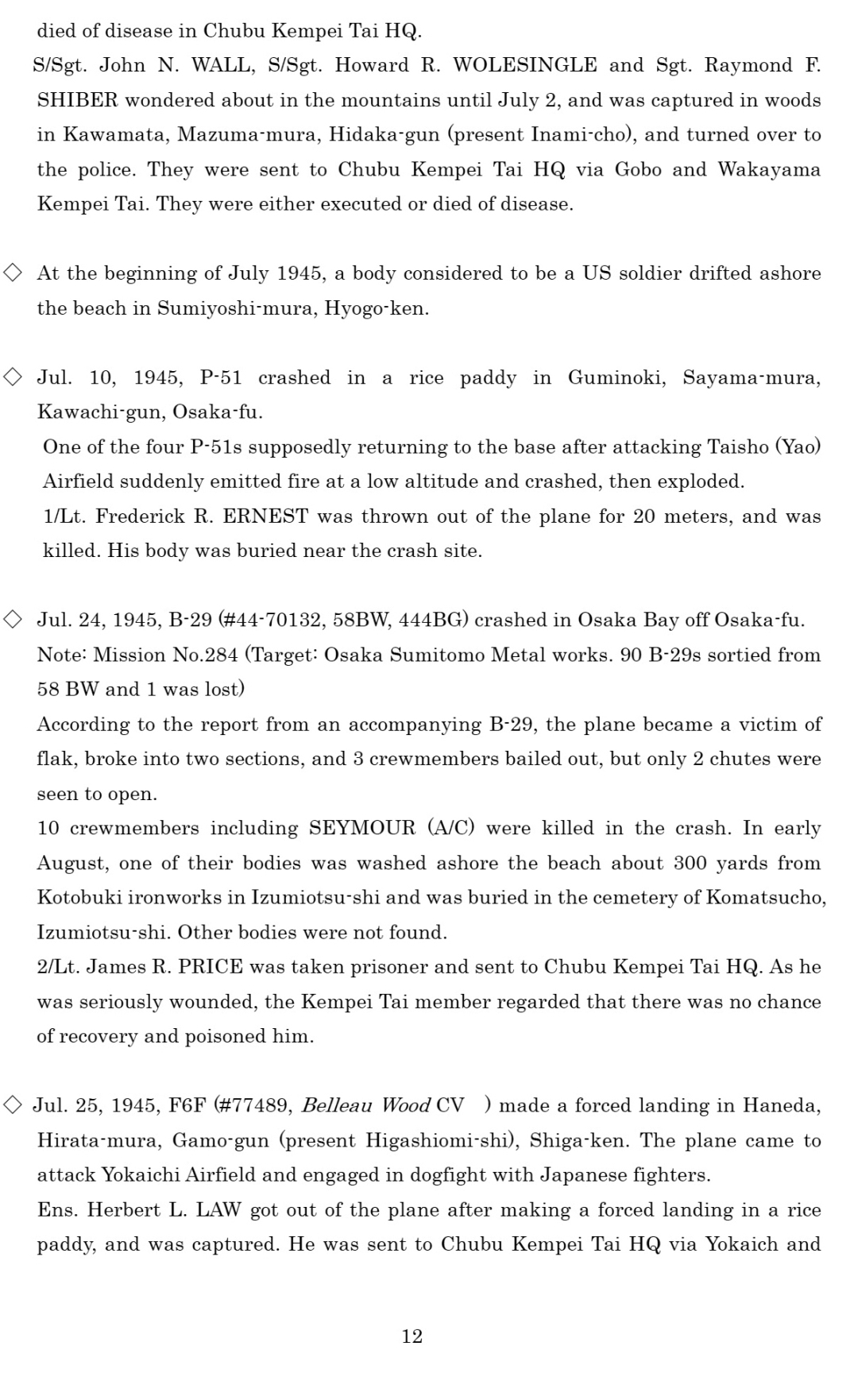 two pages of the Chubu Army District Summary prepared by POW Research Network Japan Lt Lehnen's date of death is stated as 5 August 1945 |