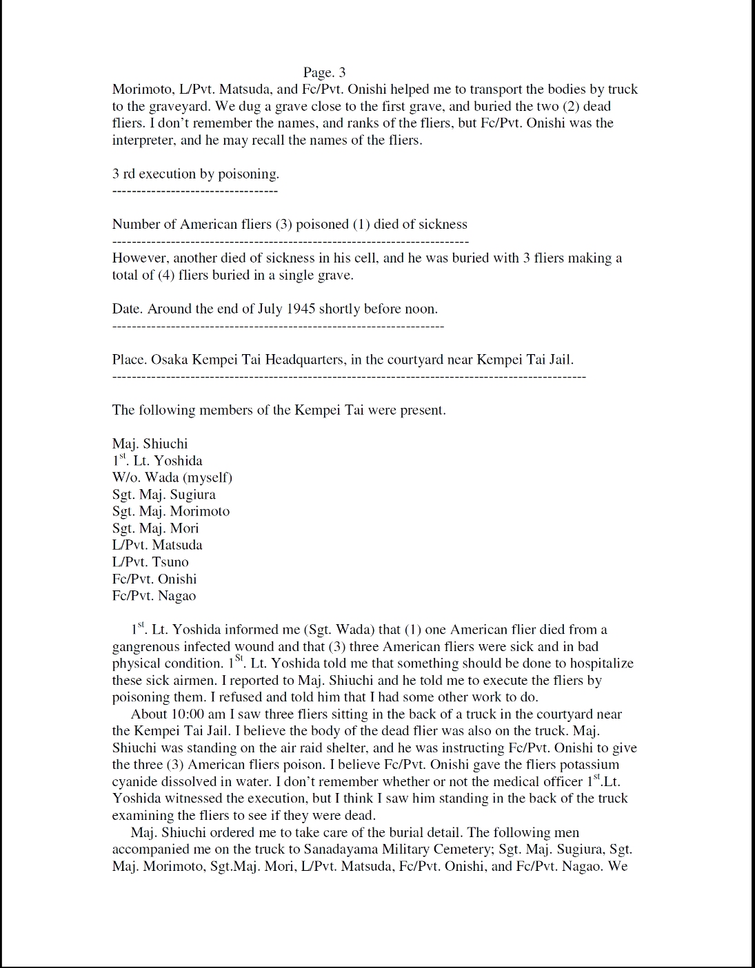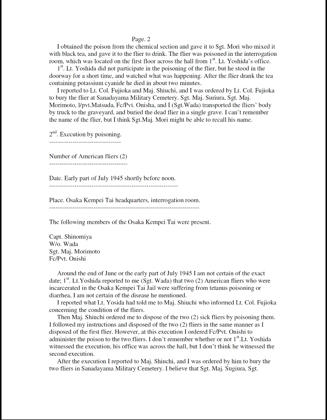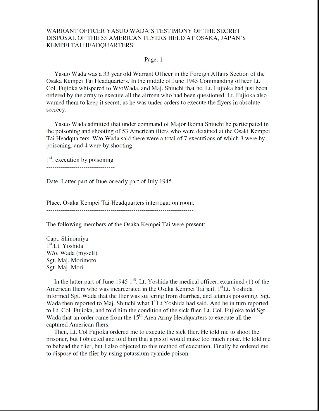 The two pages of this section contain testimony of Warrant Officer