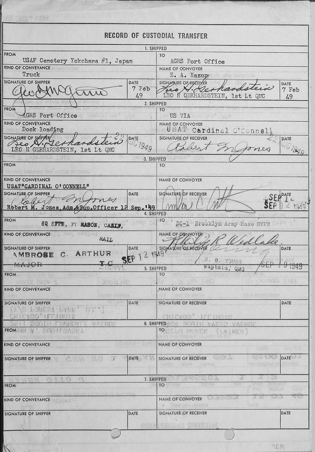 RECORD OF CUSTODIAL TRANSFER 7 FEB 1949