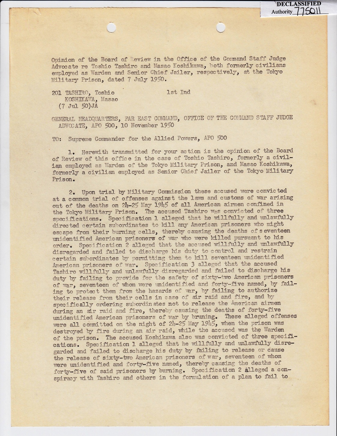 OPINION OF THE BOARD OF REVIEW TOSHIRO TASHIRO AND MASAO KOSHIKAWA PAGE 1
