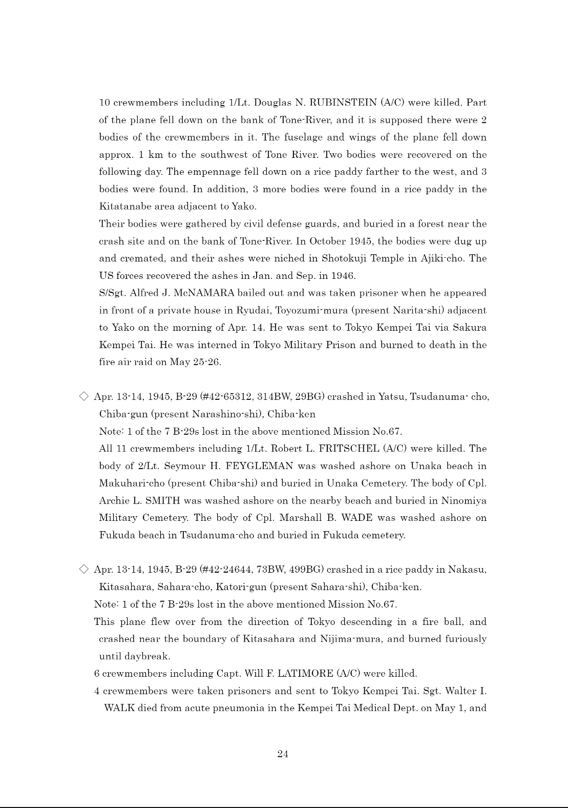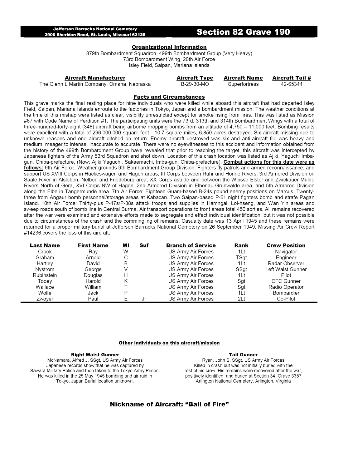 SSgt Alfred John McNamara Tokyo Military Prison 1st Lt Douglas H Rubinstein, Jr, Crew Page 2