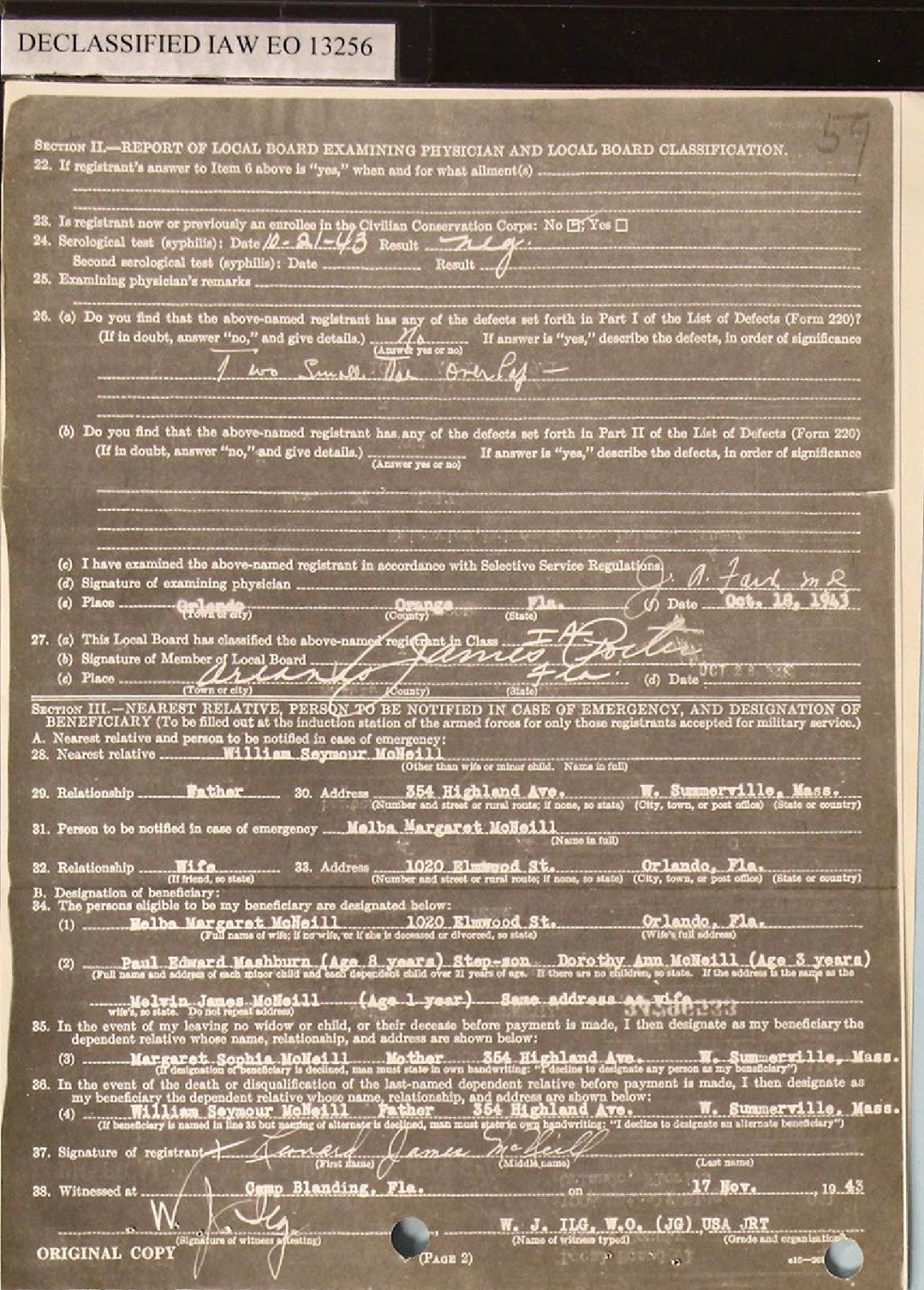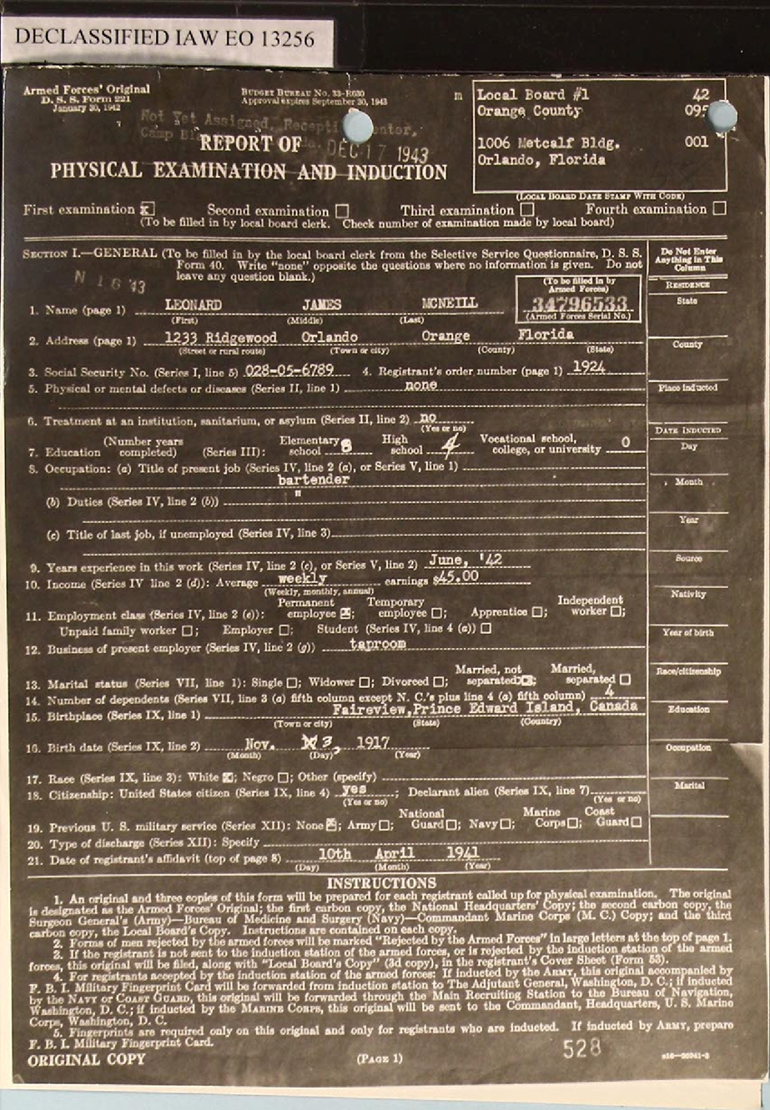 Sgt Leonard James McNeill Tokyo Military Prison Enlistment Page 1