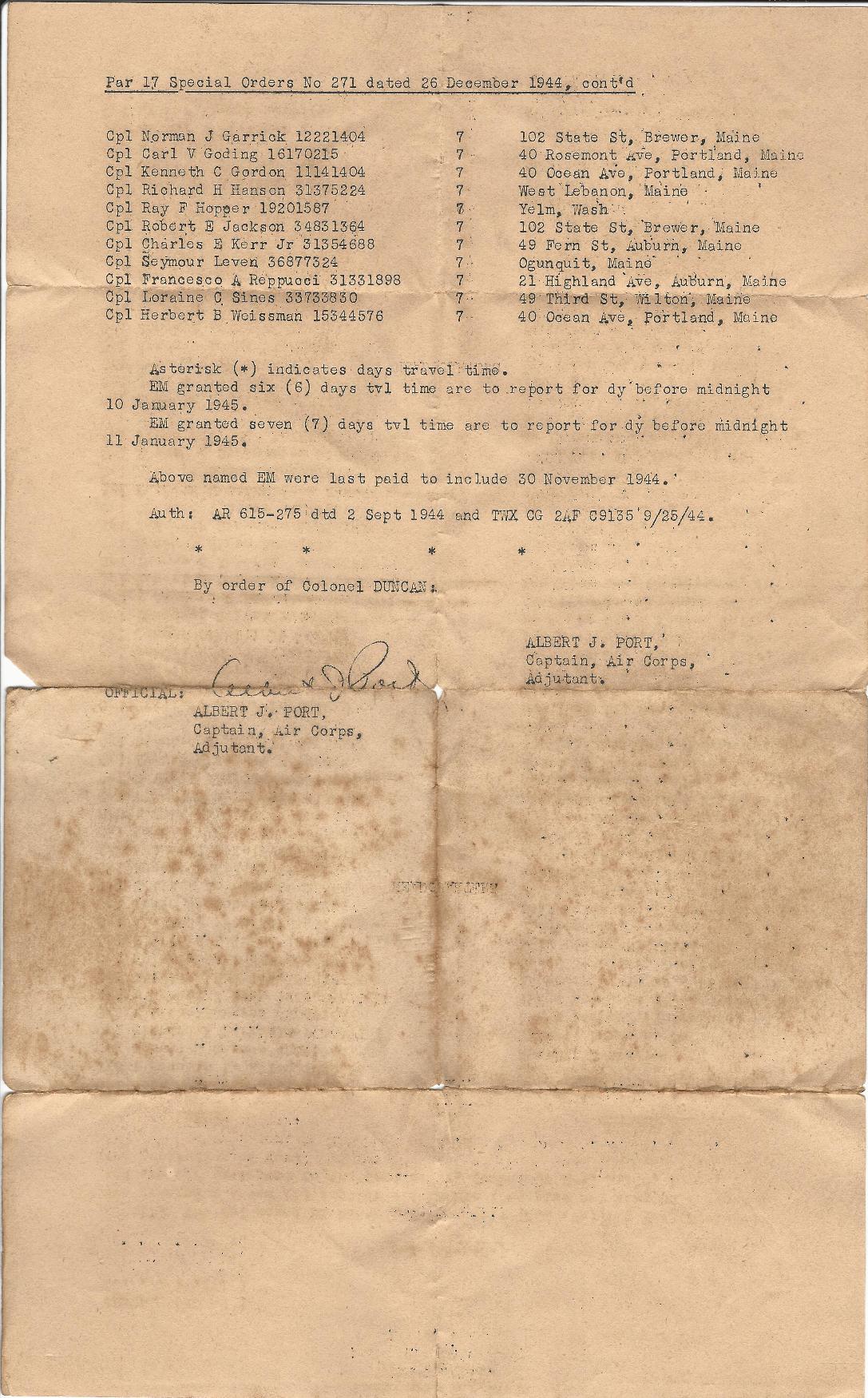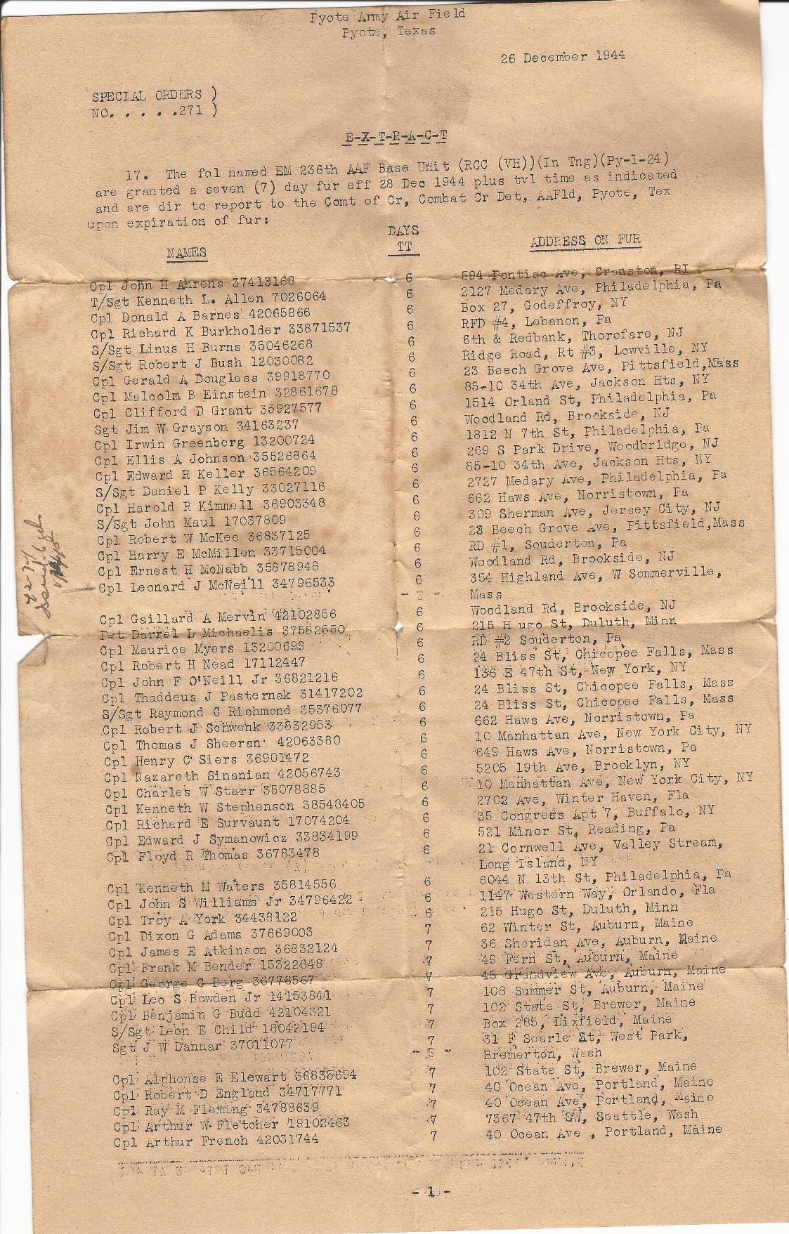 Special Orders No 271 were issued at Pyote AAF This is followed by two IFRs covering the period The first is from Pyote AAF and the second Kearney AAF. |